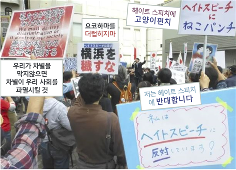 증오 행위를 했다고 인정이 되면, 개인이든 단체든 이름을 공표합니다. 다만, 아쉬운 혐한 집회를 사전에 제한하는 규정은 마련되지 못했죠. 여기까지 가려면 일본의 집권세력이 구조적으로 바뀌어야 합니다.