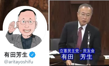 일본 입헌 민주당 의원 아리타 요시후(有田芳生)입니다.