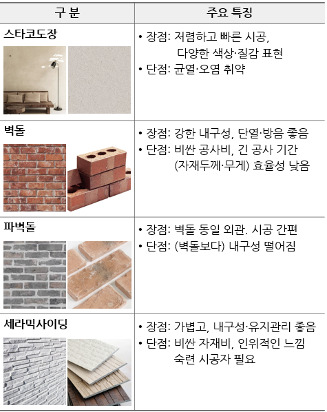 그래서, 외벽 마감재는 장단점을 고려하여 신중히 선택해야 합니다.