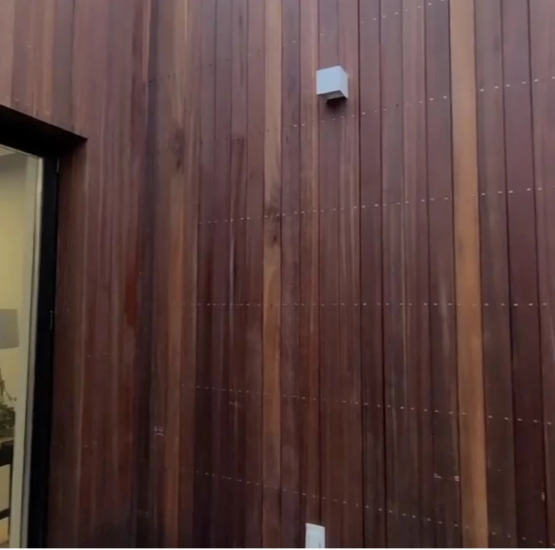 빈티지 감성의 집을 꿈꾸며 테라스 벽면과 마당 울타리에 외장용 우드를 부분적으로 사용했습니다.