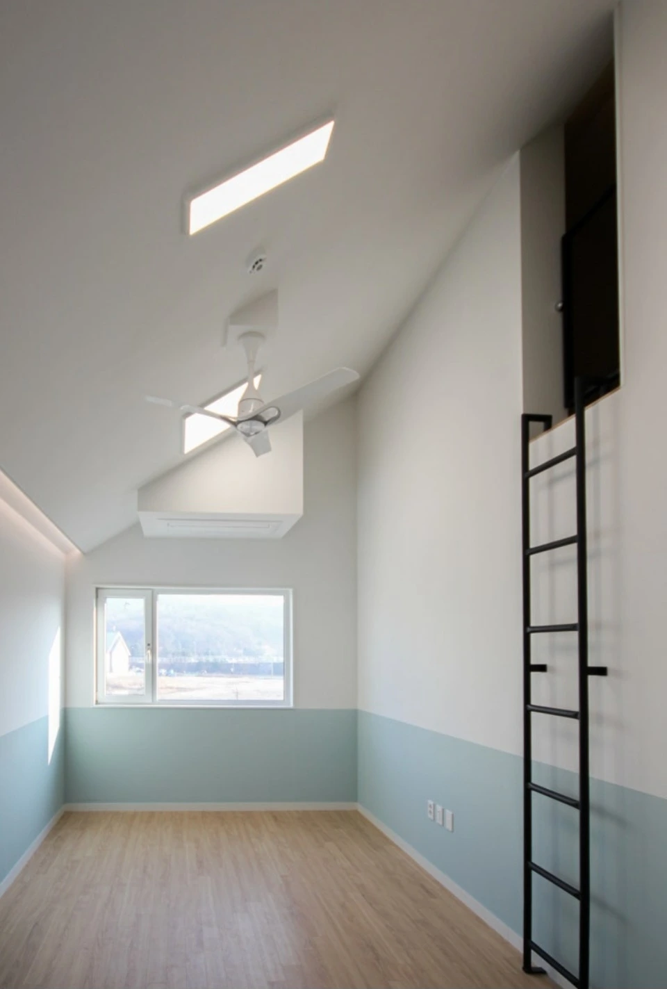 저희 집은 박공지붕 아래 낮은 공간을 활용해 다락방을 계획했습니다. 건축법상 다락방은 천장 높이가 1.5m 이하라면 연면적(용적률 계산)에 포함되지 않습니다.