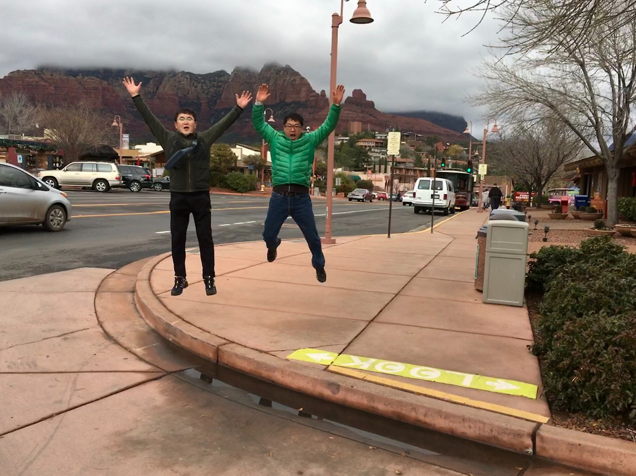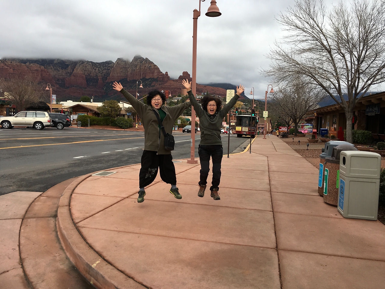 잭팟을 터뜨리는 라스베이거스에서의 꿈은 접어야 할 모양이다. 모두 이 방면에는 취미도 솜씨도 없는 것 같다. 라스베이거스의 동쪽 한 귀퉁이만 접했지만, 우리는 라스베이거스의 분위기를 느낀 것만으로도 만족하고 다음날 세도나로 향하기로 의견을 모았다. 여행을 하면 설렘 탓인지 늘 이른 새벽에 잠에서 깨어난다. RV Parking 앱을 열고 세도나에서 머무를 RV Park을 찾아본다. 처음 계획은 세도나에서 하룻밤을 머물 계획이었지만 폭풍으로 인해 요세미티 국립공원이 문을 닫는 관계로 일정 여유가 생겨 이틀을 머물 계획이다. 인터넷에서 검색해보니 세도나 여행은 빈티지 스타일 버스인 Trolley 버스를 타고 A, B 두 코스를 모두 돌면 세도나 전체를 볼 수 있을 것 같다. Trolley 버스를 이용하려면 도심에 가까운 RV park을 예약해야 할 것 같다. 지도상에 검색한 결과 89A 도로와 179번 도로가 만나는 곳에서 179번 쪽에 위치한 Rancho Sedona RV park이 가장 적당할 것 같다. 사이트상에 예약 기능이 없고 전화로 예약해야 한다. 전화번호를 메모해 두고 다른 일행이 깨지 않도록 조심조심 움직인다. 그러나 모두 나처럼 여행의 설렘 탓인지 깨어 있다. 다들 다른 일행에게 방해가 되지 않도록 조심할 뿐이다. 아침 일찍 서둘러 준비하고 라스베이거스에 안녕을 고했다. 라스베이거스를 떠난 지 얼마 되지 않아 후버댐 입구를 만났다. 여행 계획을 짜면서 전혀 염두에 두지 않았고, 생각지도 못한 곳이다. 세도나까지는 4시간 정도면 충분하기에 우리는 후버댐에 들러 구경을 하기로 하고 입구에 들어섰다. 입구의 경비는 삼엄하다. 모두 차에서 내리고 금속 탐지기로 차량 내외부를 샅샅이 검색한다. 테러에 대비한 철저한 검문이다. 문득 우리가 여행자 아닌 어느 분쟁지역을 통과하는 난민 또는 그런 부류의 사람 같은 느낌이 든다. 검색을 끝낸 중년의 백인 여성이 호감을 가지고 한국어 인사말을 묻는다. 그리고 친절히 한국어로 인사를 건넨다. 후버댐은 유명세로 인하여 웅장한 위용을 자랑하리라는 기대와 달리 우리가 볼 수 있는 것은 기대한 만큼의 웅장함은 없는 것 같다. 댐을 통과하는 도로가 네바다주와 애리조나주의 경계선이라 각주의 시간을 가리키는 시계탑이 서있다. 1시간의 시차로 인하여 애리조나주를 들어서면서 1시간을 잃은 셈이다. 애리조나주를 넘어서자 풍경이 색다르다. 특이한 모습의 바위들이 도로변 군데군데에 '여기는 애리조나주입니다.'라고 말하는 듯 위풍당당히 서있다. 그렇게 한참을 달려 40번 고속도로를 벗어나자 꼬불 꼬불한 내리막길이 나타난다. 바로 비경의 드라이브 코스 89A 도로다. 쭉쭉 뻗은 소나무들 사이로 모습을 드러내는 붉은 바위산들, 서서히 세도나의 풍경들이 우리를 반기고 있다. 코코니 노 국립 산림지, 슬라이드록 스테이트 파크, 그리고 세도나의 도심을 통과하여 오는 도중 전화로 예약했던 Rancho Sedona RV Park에 도착했다. 오피스에 들러 체크인을 하고 지정된 위치에 자리를 잡았다. RV Park 내부에 야외 바비큐 장소가 있어, 오늘 저녁은 오는 도중 마켓에서 사 온 돼지고기로 한국식 바비큐를 해 먹기로 했다. 바비큐에는 여행의 즐거움을 더하는 한잔의 술이 있어야 하기에, 우리는 시내로 나와 양주와 맥주도 사고 이곳저곳 세도나의 거리 일부를 구경했다. 보텍스( Vortex ) 관련 가게들이 거리 곳곳에 즐비하다. 보텍스의 사전적 의미는 소용돌이, 우주 물질의 와동, 이런 뜻인데 우리가 말하는 기(氣)와 같은 의미로 풀이해도 될 성싶다. 흔히들 그렇게 말하니까? 어느 블로그에서 보았던가? 'God created the Grand Canyon but he lives in Sedona'라는 말이 언뜻 생각난다. 주변의 붉은 바위산들의 오묘한 모양새가 과연 신들이 사는 마을이라 할 만하다. 별은 총총히 밤하늘을 수놓고, 바베큐장의 고기는 지글지글 익어가고, 신과 더불어 잔을 나누며 세도나의 첫밤은 그렇게 깊어 갔다. 다음날 우리는 본격적인 세도나 투어를 위해 시내로 나갔다. Trolley 버스 투어 팻말을 보고 매표소에 가서 인터넷상에 조회한 내용을 보여 주며 A, B코스를 함께 할 수 있는 표를 달라고 했다. 매표소의 백인 남자는 동시에 할 수 있다며 표를 끊어 주었다. 시간이 되기를 기다리는 동안 이곳저곳 선물가게도 들어보고 시간이 되어 마침내 버스에 승차했다. 승객은 단지 우리뿐이다. 전용버스가 된 셈이다. 겨울이라고 내린 비닐 창을 열어 달라고 요청하고 온몸으로 기를 들이키며 기묘한 세도나의 풍경을 둘러보았다. 다시 우리가 승차한 시내로 돌아와 다음 코스인 성십자 성당 (Chapel of the holy cross)에 가기를 기다리는데 투어가 끝났단다. 인터넷 사이트를 보여 주며 우리는 A, B 코스 통합표를 구매했다고 하니, 사이트에 나온 회사는 다른 회사란다. 이런 황당한 경우가 있단 말인가? 분명히 사이트 내용을 보여 주며 표를 구매했는데... 매표소 직원에게 속은 것이란 말인가? 이미 엎질러진 물이니 어쩔 수가 없다. 시내 곳곳을 돌며 조각품들을 구경하고 오후에 RV를 몰고 성십자 성당으로 가기로 결정했다. 예술의 도시답게 거리 곳곳에 조각품들이 반기고 기념품 가게마다 희귀한 보석으로 만들어진 예술품들이 