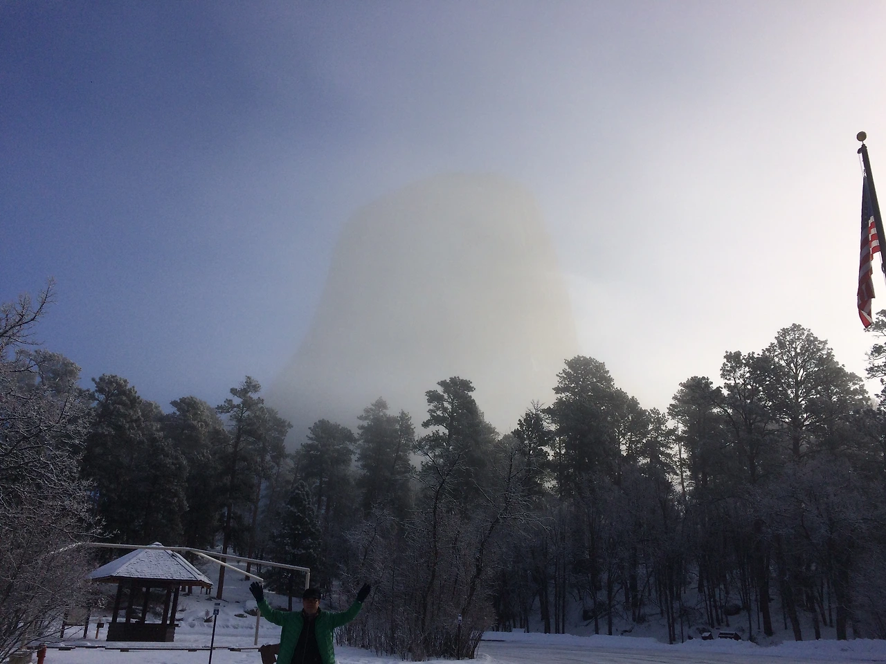 설원의 풍경을 가로지르며 스노모빌을 달리던 이틀간의 기억을 마음 깊이 담아 두고 와이오밍주 잭슨을 떠날 채비를 서두른다. 간단한 아침으로 배를 채우고 우리들의 애마 겸 보금자리에 올라 길을 재촉한다. 오늘 경로는 겨울 산악을 가로지르는 도로를 통과해야 하니 꽤 만만찮을 것 같다. 어제 미리 예약해둔 데빌스 타워 가까운 곳의 무어 크로프트( moorcroft)란 마을에 있는 Rangeland RV Park & Motel (RV park은 오픈하지 않아 모텔을 미리 예약해두었다)이 오늘의 목적지다. 출발 전 경로를 검색해보니 그랜드티튼 국립공원을 지나는 191번 하이웨이를 거쳐 다시 26번 하이웨이, 20번 하이웨이, 그리고 Bighorn National Forest를 가로지르는 16번 하이웨이, 90번 interstate 고속도로를 타고 목적지로 간다. 장장 여섯 시간 이상을 달려야 하는 여정이다. 끝없이 펼쳐진 설원을 가로지르는 도로 위로 꽤 차들이 많다. 눈이 많이 오는 지방이지만 제설 작업이 충분히 잘 되어 있어 도로 사정은 꽤 괜찮은 편이다. 도로 주변의 구릉지에서 스노모빌을 즐기는 사람들이 자주 눈에 띈다. 그렇게 평원의 도로를 몇 시간을 달려 이제 온통 암산으로 둘러싸인 도로를 달린다. 드디어 빅혼 국유림을 가로지르는 16번 하이웨이에 들어온 모양이다. 깎아지른 바위산을 배경 삼아 뻗어 있는 도로, 첩첩산중이란 단어가 가장 어울릴 듯한 적막감이 엄습한다. 스마트폰에 미리 깔아 둔 고도 측정 앱 My Altitude로 확인해 보니 고도가 해발 4000 미터를 훨씬 넘는다. 우리가 계획했던 겨울 여행의 코스 중에서 가장 걱정했던 것이 험준한 산을 넘어서는 것이었는데, 그래도 걱정했던 만큼 어려움은 없이 순탄하다. 운전하는 친구에게는 미안한 마음이지만 너무 순탄하고 평화로운 느낌 때문에 조수겸 가이드의 임무를 망각한 체 잠깐 졸음에 빠지기도 했다. 우람한 근육질을 자랑하는 바위산, 그 바위산을 호위하듯 서 있는 쭉쭉 뻗은 침엽수림, 그리고 몽환적 분위기를 더하는 하얀 눈과 덧칠하듯 뿌리지는 안개... 고산 도로의 풍경을 만끽하며 우리는 빅혼 국유림을 넘었다. 그리고 95번 interstates를 타고 오늘의 목적지인 무어크로프트란 마을에 도착했다. 아주 작은 전형적인 시골 마을이다. 해는 이미 저물어 어둠이 깔리고 소복소복 눈이 내리기 시작한다. 우리는 예약한 모텔에 체크인을 하고 여주인장이 알려 주는 빈공터에 차를 세우고 저녁 준비를 서둘렀다. 오늘 장시간의 여독을 풀기 위해서는 맥주 한잔을 곁들여야 할 것 같아 마을의 컨베니언 스토어에 들렀다. 그러나 이 마을은 컨베니언 스토어에서는 맥주를 팔지 않는다. 어디에서 맥주를 살 수 있는지 물어보니 건너편 비어홀을 가르쳐 준다. 비어홀의 문을 열고 들어가니 서부 영화에서 볼 수 있을 것 같은 분위기의 맥주집에 한 두 사람 정도의 손님이 맥주를 마시고 있다. 그곳에서 우리는 원하는 맥주를 사들고 RV 카로 돌아왔다. 미국은 각 주나 카운티 마다 알코올음료 판매에 대한 규정이 각각 틀린다. 예를 들면 내가 살고 있는 조지아주는 알코올 도수가 높은 술은 리커 스토어에서만 판매하고, 맥주나 와인 종류는 라이센스를 취득한 식품점이나 컨비니언 스토어에서 판매할 수 있다. 그러나 식당에서는 술을 판매를 할 수 있지만 밖으로 가지고 나오는 것은 금지되어있다. 그러나 캘리포니아주의 경우는 식품점에서도 리커 종류도 판매할 수 있다. 그러니 이곳은 오로지 비어홀 같은 곳에서만 술을 판매할 수 있나 보다. 한잔의 맥주와 더불어 오늘의 무사 운행을 감사하며 저녁식사를 마치고 숙소로 돌아왔다. 모텔은 작지만 비교적 깨끗하다. 주인장인 백인 중년 여성은 연신 마당에 쌓인 눈을 쓸고 있다. 저녁 내내 눈을 쓸어야 하겠다고 하니 눈이 내리면 힘들단다. 내일 코스는 데빌 타워, 러시모어(큰 바위 얼굴), 배드랜드를 거쳐 남쪽으로 가는 중간 기착지인 사우스 다코타주의 kimbell에서 1박을 하는 것으로 정했다. 여행 중의 가장 중요한 일은 사전 여행 계획에서 미리 정해 두긴 하였으나 우리가 가야 할 코스를 지도 앱에서 측정하고 그리고 하루 밤을 머무를 장소를 정하고 호텔 앱이나 RV park앱에서 예약하는 일이다. 와이오밍주와 사우스 다코타주에서 볼거리를 보고 다음 목적지인 아칸소주의 핫 스프링까지는 워낙 장거리이기에 중간 기착지를 두 곳으로 정했다. 그 첫 번째가 사우스 다코타주의 킴벨이란 동네다. 그곳은 단순히 1박을 위한 중간 기착지인셈이다. 아침에 눈을 떠니 온 동네가 새하얗다. 서둘러 아침을 먹고 데빌 타워로 향했다. 어느 정도 가다 보니 멀리 우뚝 솟은 암벽 탑이 반쯤 안개와 구름에 휩싸인 체 신비롭게 모습을 드러낸다. 드디어 데빌 타워 입구를 도착했다. 매표소에는 사람의 그림자도 보이지 않는다. 차를 세워 두고 관리 사무소로 보이는 건물로 가서 보아도 사람의 그림자는 보이지 않는다. 겨울이라 공원을 열지 않는가? 다시 매표소 쪽으로 돌아와 안내문을 자세히 읽어 보니 겨울 동안은 비치된 봉투에 입장료( 정확한 금액은 기억이 가물하지만 15불인가 20불 정도인 것 같았다.)를 넣어 비치된 함에 넣고 들어 가면 되는 것이다. 우리는 안내문의 