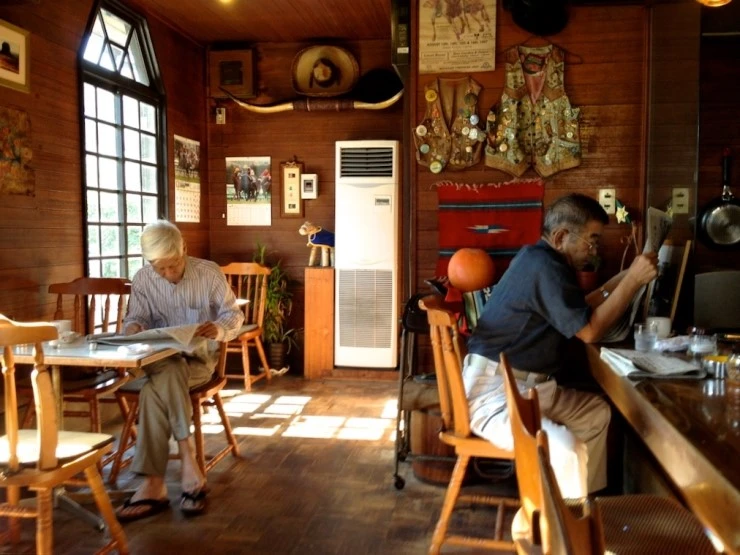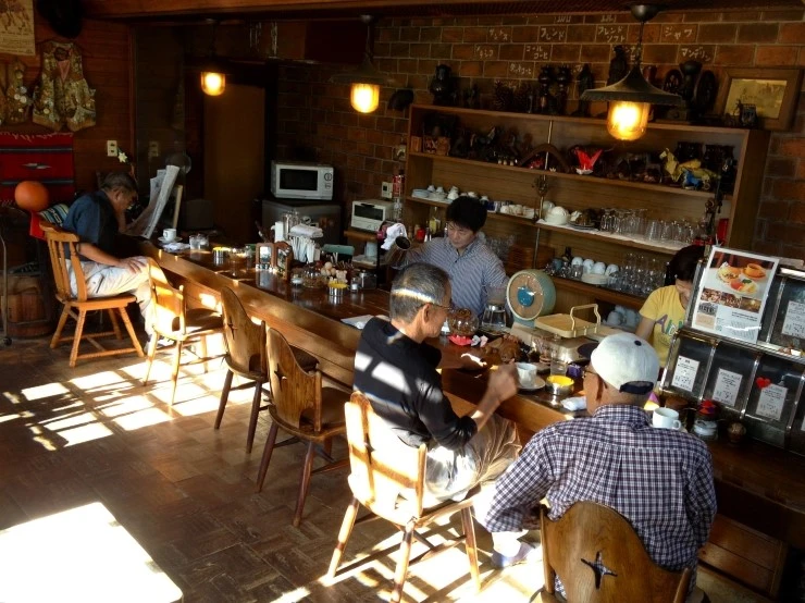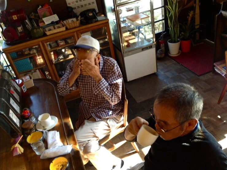 화덕 빵 워크숍 날 아침이었어요. 아케미 아주머니가 ‘올리브유가 다 떨어졌으니 사다줘’ 라고 하시네요. 아케미 아주머니의 말에 마키 아저씨와 슈퍼에 갔어요. 그런데 아저씨가 “슬슬 출근시간이구먼~ 커피 한 잔 하고 갈래?”라며 슈퍼마켓 맞은편 카페에 들어갔어요. 알고 보니 마키 아저씨가 매일 아침 식사를 한 뒤 커피를 한 잔 마시며 하루 일과를 시작하는 카페였어요. 아침마다 어디 가시나 했는데, 궁금증이 풀렸네요.