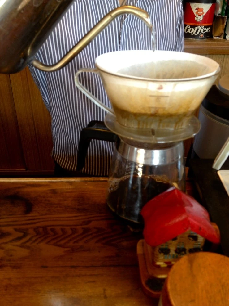 이곳은 아저씨의 30년 단골 가게, 킷사텐 (喫茶店) <카르디 (Kaldi)라는 곳이었어요. 킷사텐은 차를 마시고 담배를 피우는 가게라는 뜻이에요. 카페인데 카페와는 달라요. 일본식 카페라고 할까요. 일단 주 메뉴가 에스프레소가 아닌 진한 드립 커피고요, 라떼가 없어요. 대신 드립 커피에 우유를 넣은 카페오레가 있어요. 이게 일본식 카페인 킷사텐의 주 메뉴에요. 일본 사람들이 한국 카페에서 카페오레가 없어 당황하면 라떼를 추천해 주세요.