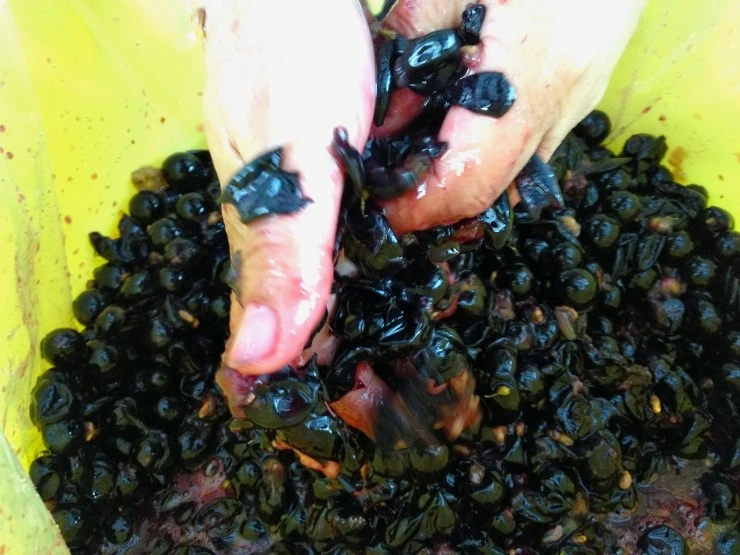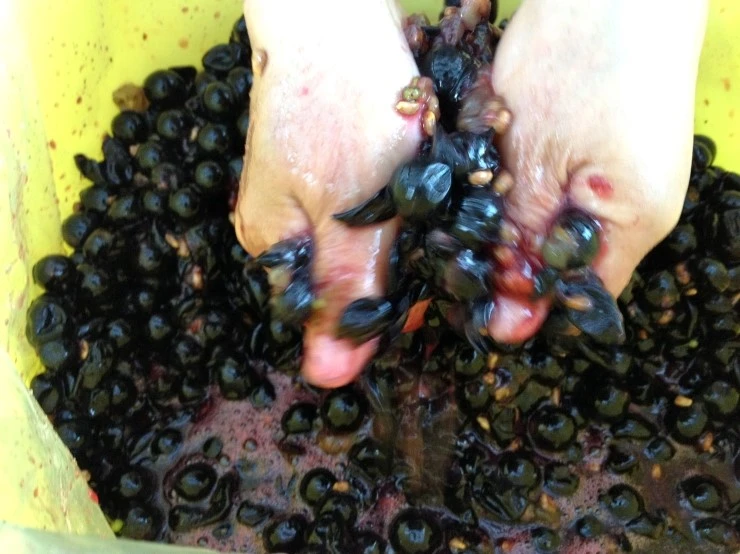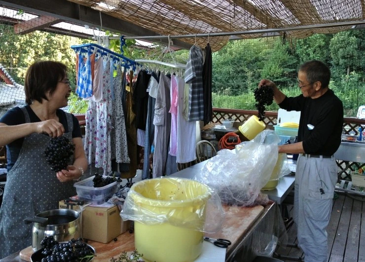 “통에 포도를 담은 뒤 백설탕을 적당히 넣어주고 빨래하듯 잘 비비고 짜 줘. 설탕이 포도에서 수분이 빠져나오게 해 주거든. 그러면서 즙이 베어 나오는 거야.”