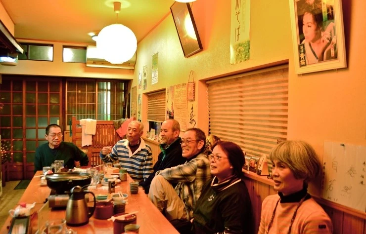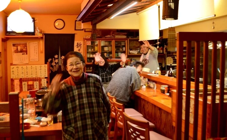 주인장 아저씨는 심야식당의 마스타- 에 비해 풍채는 좀 있었으나 넉살이 좋았고, 손님들은 대부분 동네 단골인 듯했다. 야마자키 아저씨가 ‘저 멀리 시가에서 화덕 만들기를 도와주러 온 친구들이요’이라 소개하니 가게 안 사람들이 모두 같이 이야기를 나누기 시작했다.