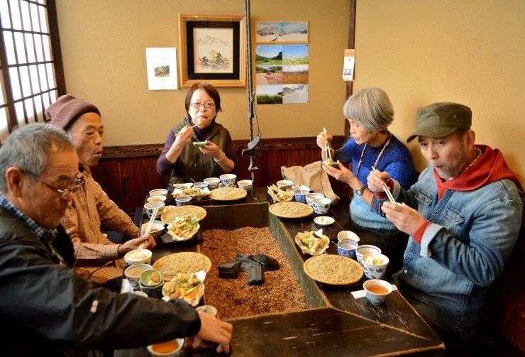 소바 연구회 모임답게 점심은 소바를 먹었다. 이즈모 소바가 일본 3대 소바 중 하나라기에 기대하고 먹었으나, 정말 솔직히! 맛은 신짱과 노부짱 아저씨가 만들어준 게 훨씬 더 맛있었다. 아주머니 아저씨들도 나와 같은 생각이었나 보다.