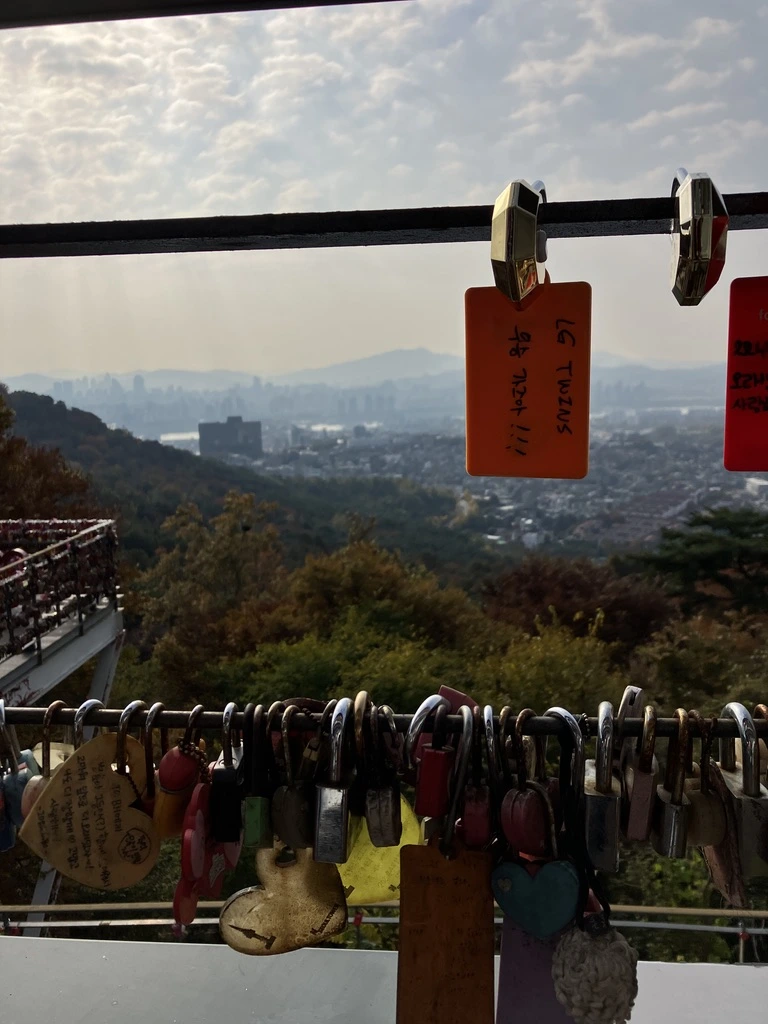 남산 타워 자물쇠가 여기까지 걸려있었다. 언젠가 자물쇠 잠그러 같이 갈 사람과 이 길을 고즈넉이 걸어보고 싶다 생각하며 돌아왔던 것 같다. (그게 언제가 될까?)