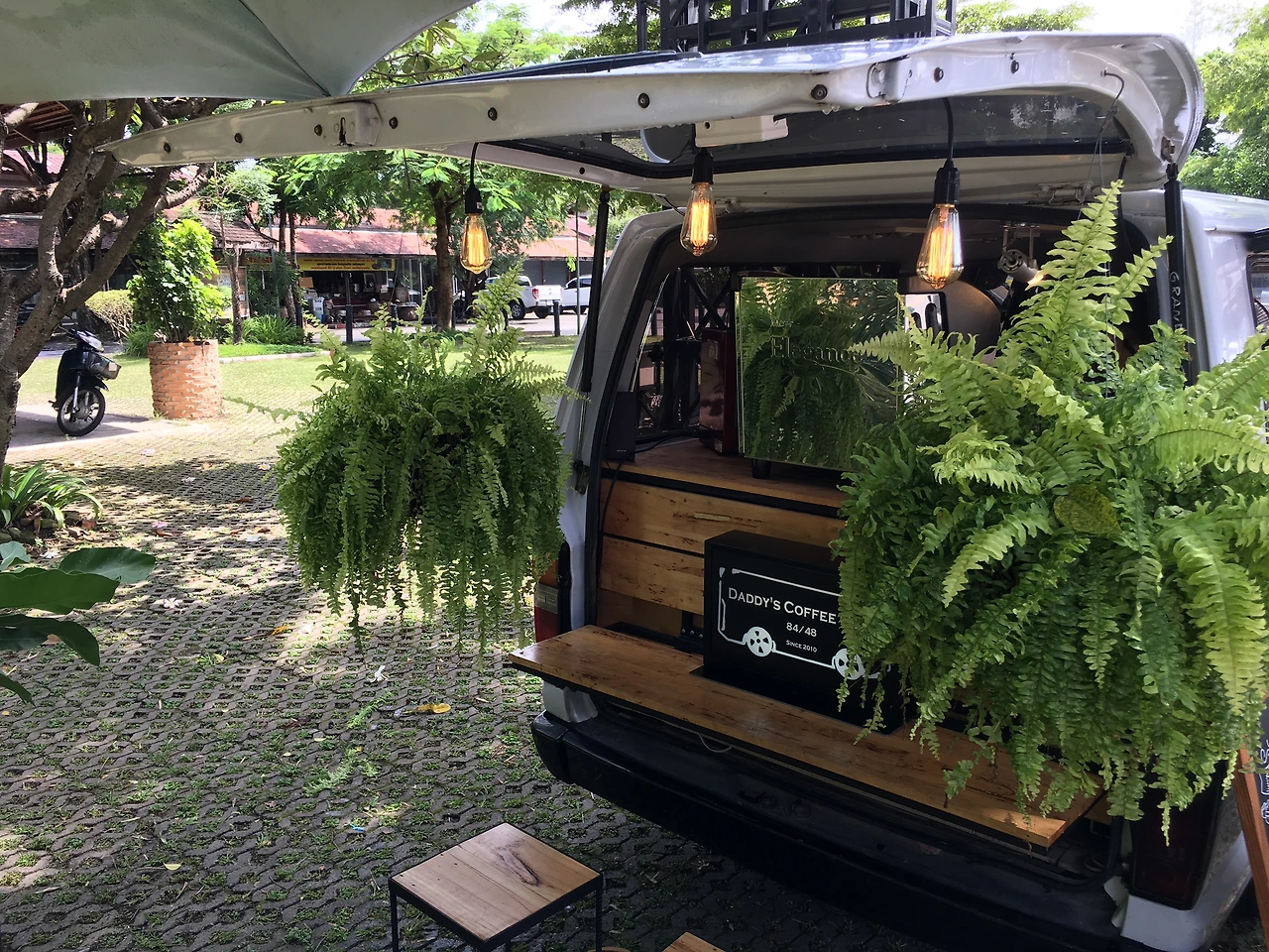뜬금없지만 근처 쇼핑몰에서 피자를 먹었다. 그리고 들어오는 길에 단박에 마음을 사로잡는 커피 트럭을 발견했다. 오예 커피 타이밍. 도로 옆, 차가 지나가면 작아졌다가 차가 멀어지면 선명해지는 음악 소리가 기분 좋았다. 후텁지근한 날씨에도 가만히 앉아 있으면 바람이 살랑 불어오고 그 바람에 이름 모를 이국의 나무들도 함께 살랑댔다. 분위기에 취해서 당연히 노-슈가를 잊어버린 탓에 나는 또 달디 단 라테를 마셔야 했다. 그럼 뭐 어때, 이렇게 아름다운데. 이때 흘러나오던 스탄 게츠는 여행 내내 나와 함께였다.