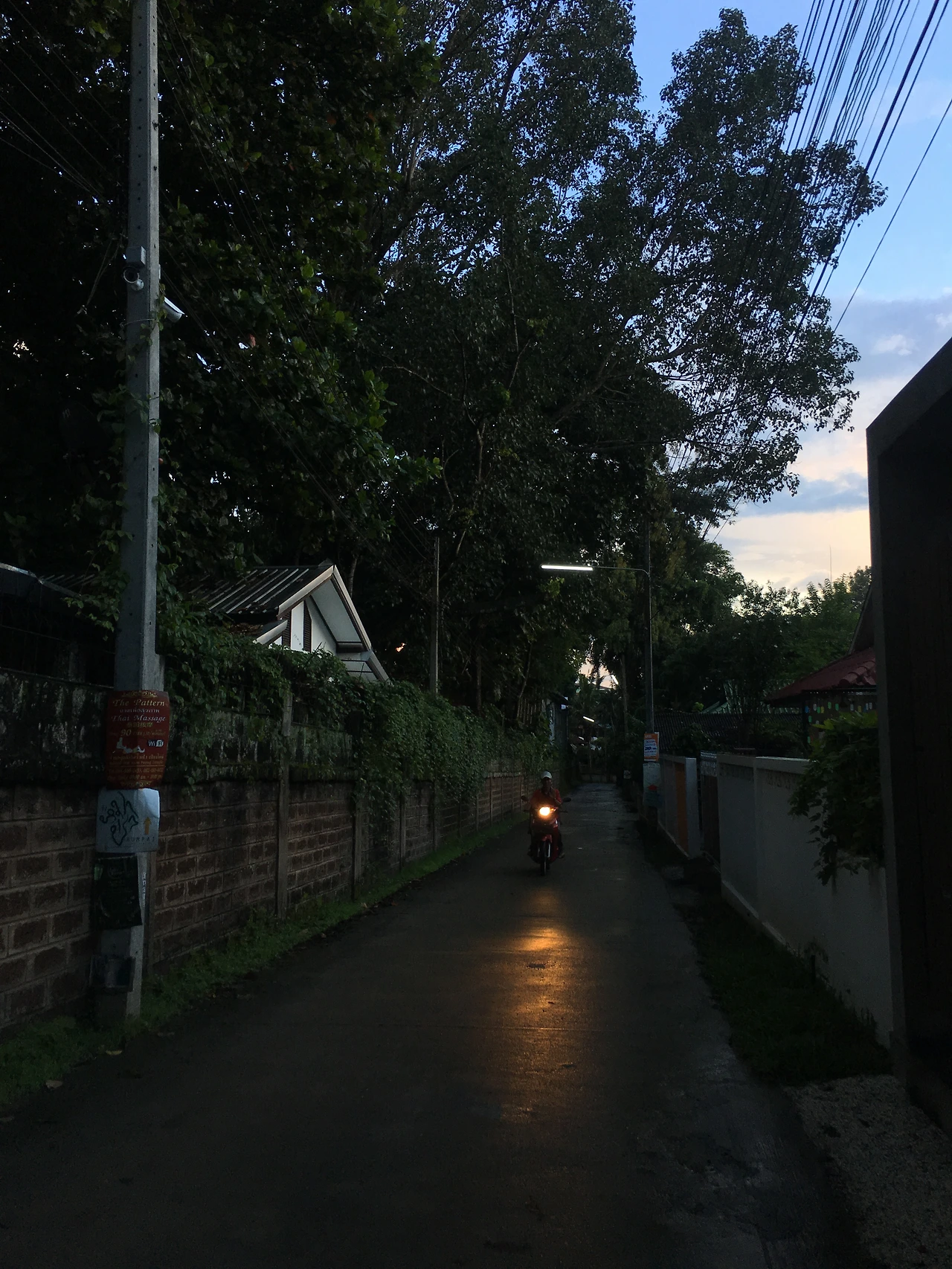 치앙마이로 왔지만 여전히 특별한 계획은 없어서 오후 내내 마음껏 숙소에서 자유시간을 보내고 아주 어두워지기 전에 밥을 먹으러 나섰다. 한국인들에게 유명한 식당이 근처에 있어서 가보기로 했다. 예약은 미리 못했지만 일단 가보자, 하며 나섰는데 마침 쉬는 날인지 문이 꼬옥 닫혀 있었다. 반캉왓 주변의 마을은 길이 꽤 예뻐서 걷는 재미가 있었다.