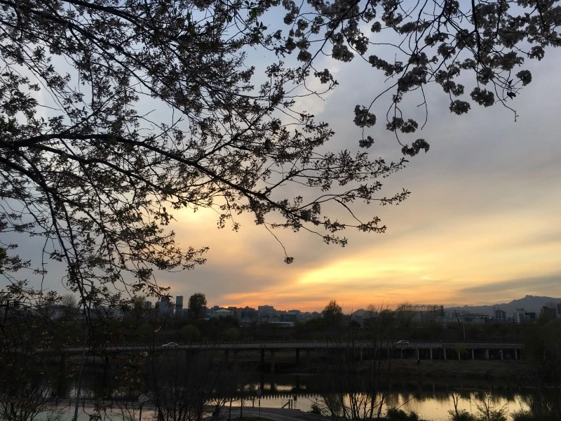 새로운 길을 걸어서 퇴근하는데 연한 봄의 색이 이어졌다. 여린 잎들, 순한 빛깔의 벚꽃잎, 차분한 하늘과 노을의 색. 딱 봄의 색이었다. 아름다워 아름다워. 작년 이맘때 화랑 유원지에서 봤던 하늘이랑 닮았다고 생각하며 넋을 잃고 감탄했다. 내내 작년에 갔던 합동분향소의 풍경을 마음속 어디인가에서 리플레이 하고 있었던 모양이다. 여느 때와 같을, 해 질 녘 하늘을 보는데 단박에 그날의 아름다웠던 하늘이 떠오르는 걸 보니.
