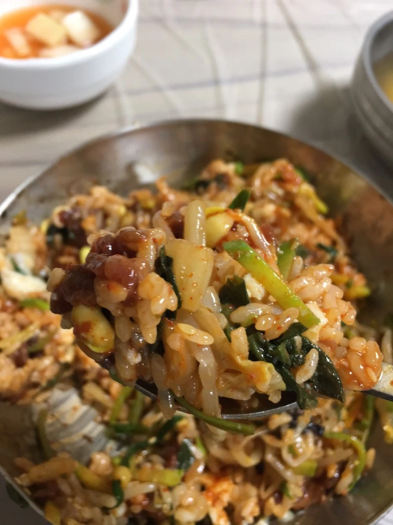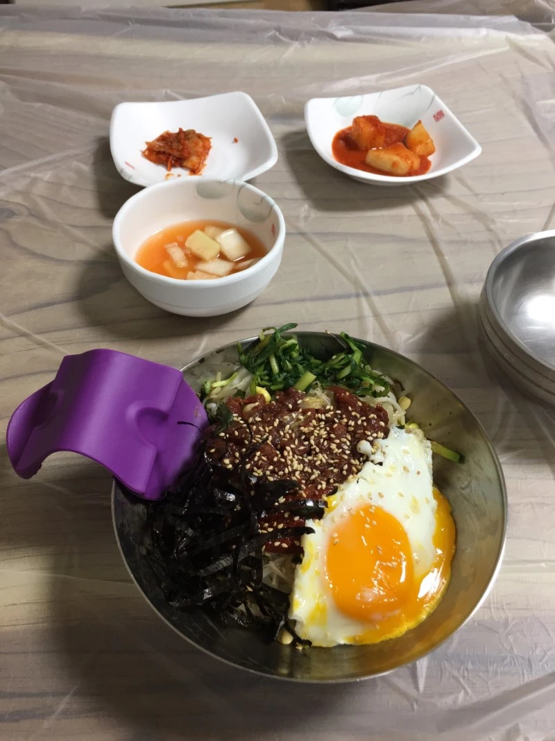 구례에서의 첫 끼는 육회 비빔밥이다. 육회 비빔밥이 차갑지 않다. 돌솥은 아니지만 돌솥비빔밥처럼 밥이 따뜻하다.