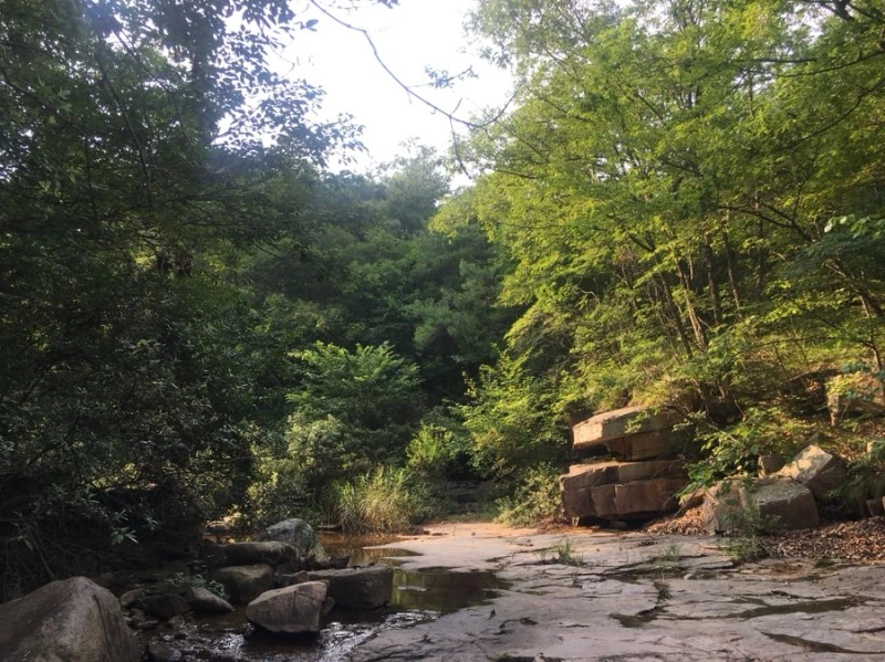 주민들을 통해 지역 자원을 찾는 과정을 거쳐 발견한, 보물 같은 계곡이란다. 사람이 아무도 없었다. 좁은 시골 도로 한 쪽에 샛길을 따라, 한 15분쯤 정리 안된 길을 걸어 들어가니 갑자기 이런 계곡이 나왔다. 여길 누가 알아, 진짜 동네 주민 밖에 모르지. 약간 신비로운 느낌까지 드는 고요한 곳이었다.