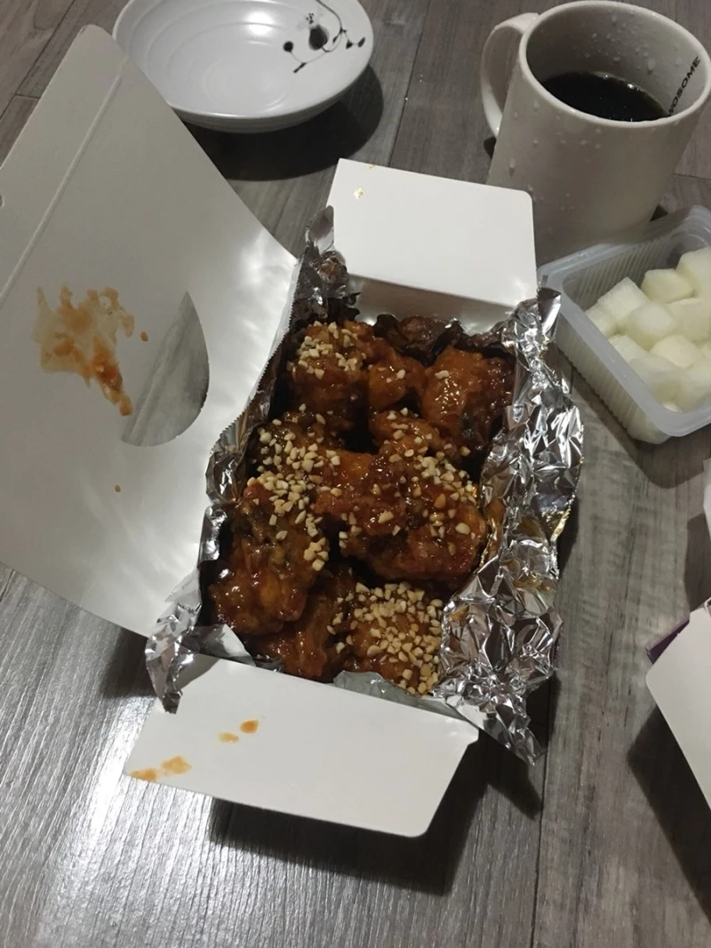 특이한 건 프라이드 찍어 먹으라고 주시는 간장 소스인데 보통의 간장 치킨의 간장 맛이라기 보다 걍 진짜 양념한 간장 맛이다. 근데 후라이드에 찍어 먹으니까 겁나 맛있다.