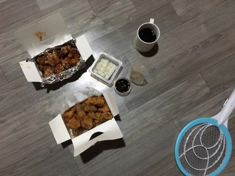 퇴근하고 나서 아무것도 안하고 쉬고 싶었지만 방이 불안정하니 좀 정리가 필요하긴 했다. 혼자라면 언제 짐 정리를 했을지 모르는데 누군가와 함께 방을 쓴다는 건 어떤 면에선 참 좋은 일이다. 물론 어떤 면에선 조금 불편한 일이고. 처음엔 하기 싫었는데 막상 솔을 들고 화장실 바닥을 문지르다 보니 기분이 엄청 상쾌했다. 맞아 나 이러려고 여기 왔잖아. 편한 것만 찾는 것이 아니라 잘 살아보려고 왔잖아. 이런 생각을 하며 바닥을 솔로 박박 문질렀다. 나중에 서울에 올라가서도, 계속 잘 할 거다. 여기 온지 사흘 만에 숙소 정리를 마무리하고 기분이 째져서 치킨을 먹었다.