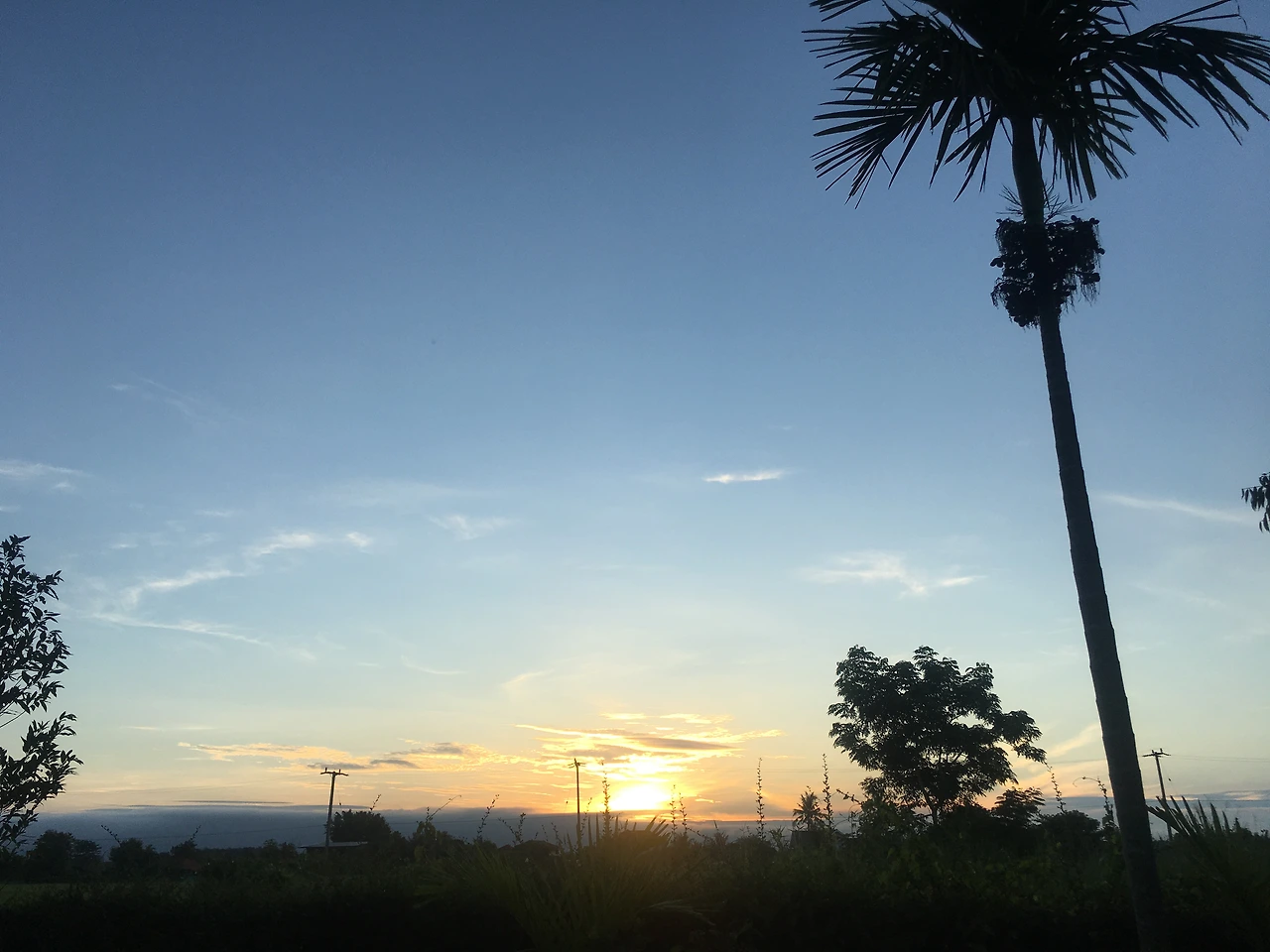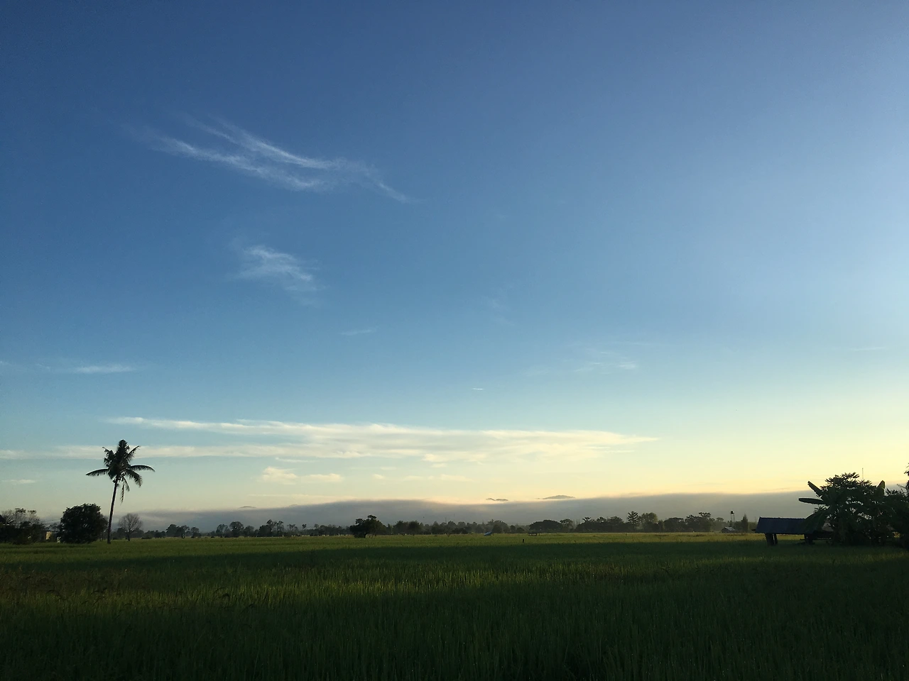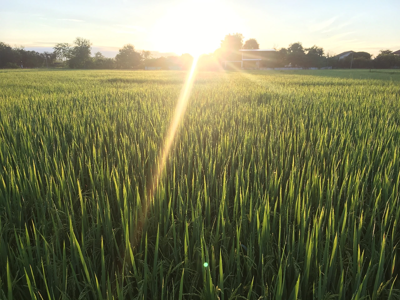 사방이 탁 트인 곳이라 그런지 하늘이 이마만큼 존재감이 있을 수가 없다. 아침에 떠오르는 해는 뭔가 빛깔도 온도도 좀 따뜻한 느낌이다. 아침 해가 따뜻한 빛깔로 감싼, 이 곳 풍경에 넋을 잃고 또 수억 장 사진을 찍었다. 푸흡. 부지런한 동네 아저씨, 할머니들, 할배들이 내가 지나갈 때마다 눈을 못 뗀다. 이 새벽에 외국인이 논두렁을 걷고 있으니. 서로 누가 먼저랄 것도 없이 씨익 웃으며 사왓디카- 고개 까딱 인사를 건넸다. 사람 마음까지 따뜻하게 하게 만드는 아침 햇볕이구나.