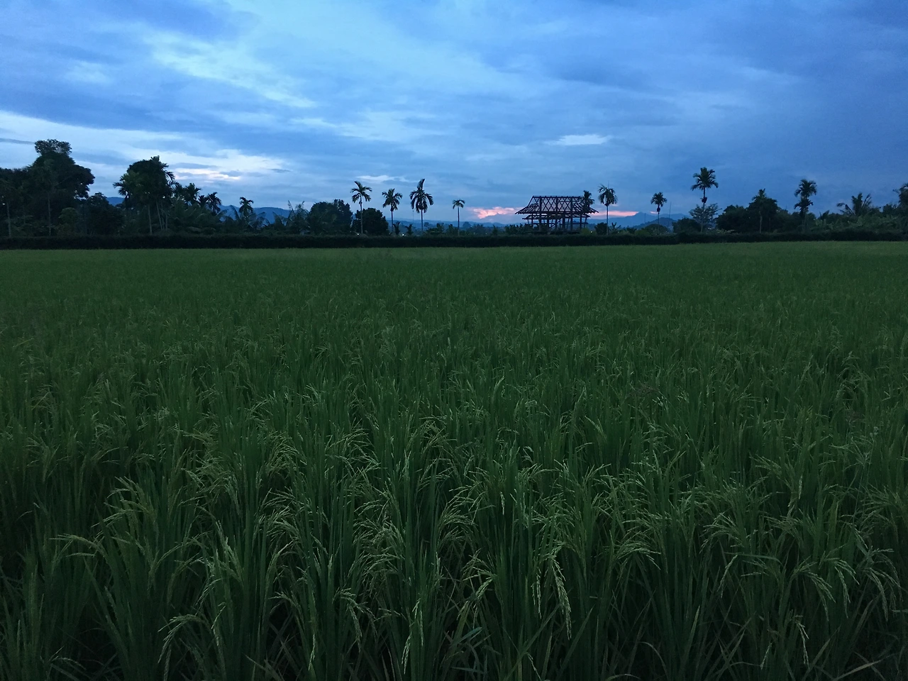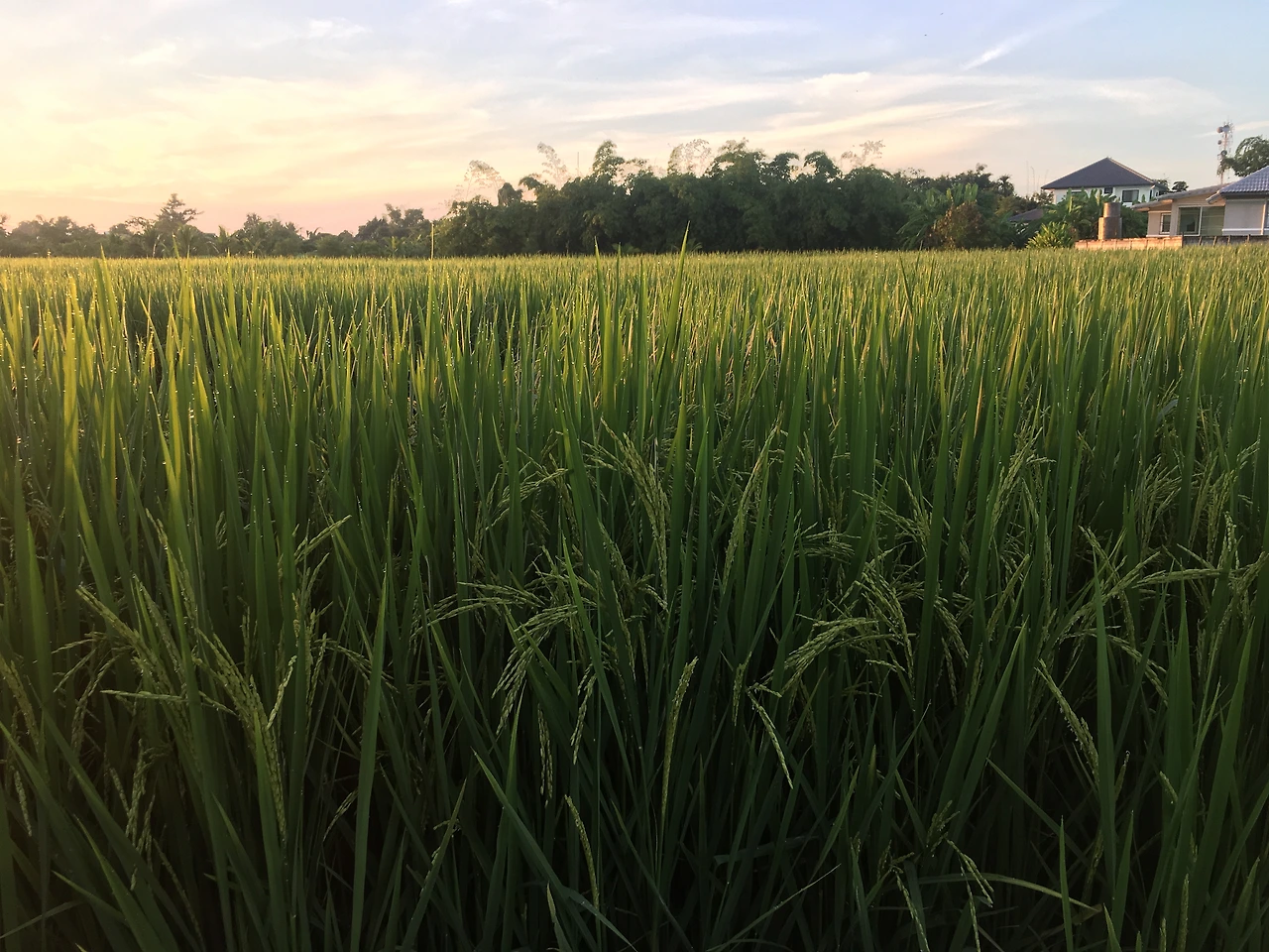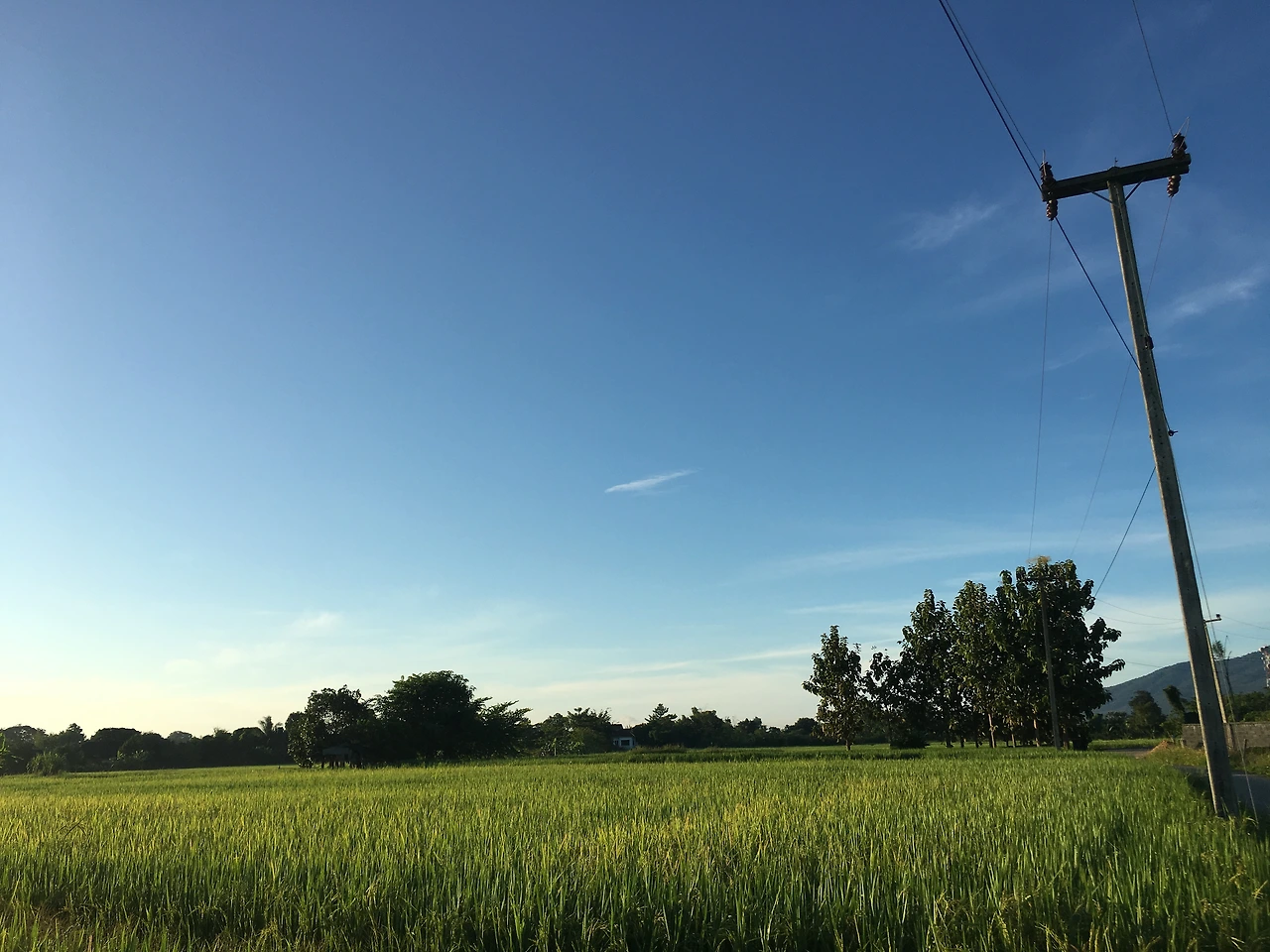 사방이 탁 트인 곳이라 그런지 하늘이 이마만큼 존재감이 있을 수가 없다. 아침에 떠오르는 해는 뭔가 빛깔도 온도도 좀 따뜻한 느낌이다. 아침 해가 따뜻한 빛깔로 감싼, 이 곳 풍경에 넋을 잃고 또 수억 장 사진을 찍었다. 푸흡. 부지런한 동네 아저씨, 할머니들, 할배들이 내가 지나갈 때마다 눈을 못 뗀다. 이 새벽에 외국인이 논두렁을 걷고 있으니. 서로 누가 먼저랄 것도 없이 씨익 웃으며 사왓디카- 고개 까딱 인사를 건넸다. 사람 마음까지 따뜻하게 하게 만드는 아침 햇볕이구나.