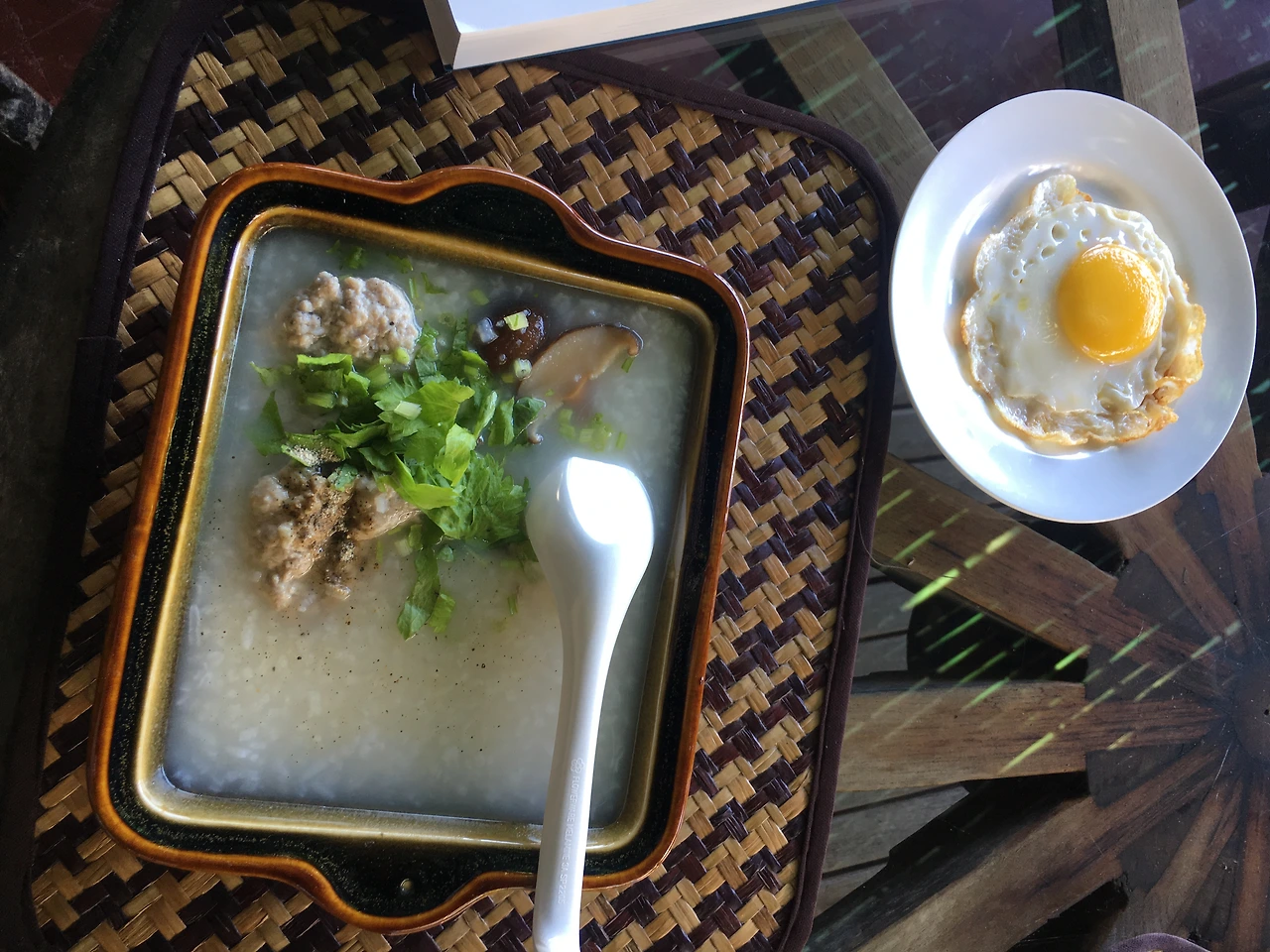 산책 후 들어와 조금 더 자고 느지막이 조식을 먹으러 카페테리아에 갔다. 쌀 죽과 계란 프라이, 과일과 떡. 아침에 부담 없이 쌀 죽이라니 좋다. 다 맛있어서 싹싹 비우고 모닝 라테 한잔을 주문해서 마저 천천히 마시고 방으로 올라왔다. 눈 앞에 저런 논이 펼쳐져 있으니 마음에 평화가 찾아온다. 이너 피스.