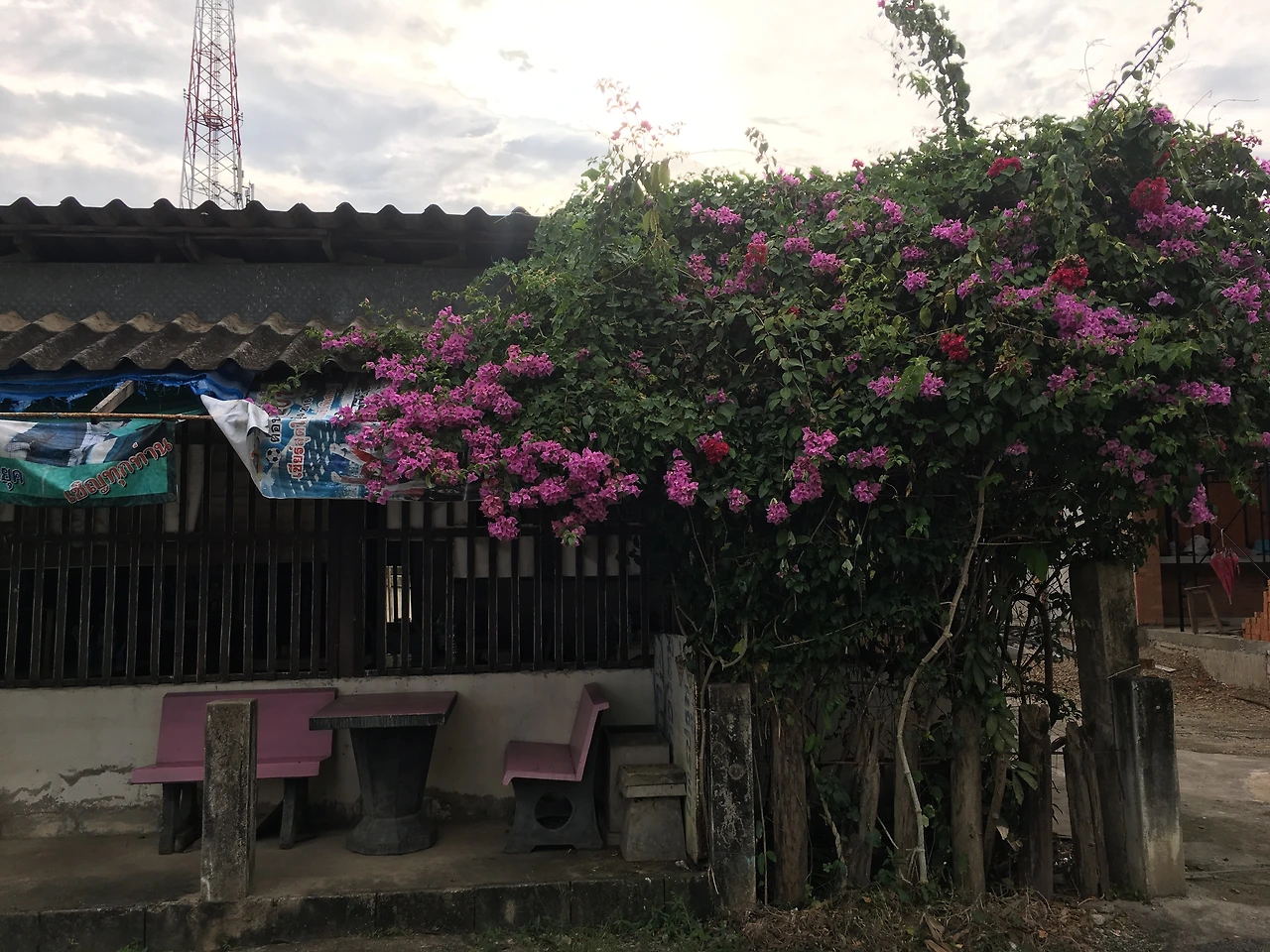 한참만에 나온 음식은 너무 예쁘고 깔끔했다. 밥그릇 마음에 쏙 들고, 소스에 띄운 꽃이며 바닥에 깐 나뭇잎이며. 이 시골마을에서 요런 상큼한 비주얼 일 줄이야. 맛도 꽤 좋았다. 아니 상당히 맛있었다. 이렇게 먹어서 6,500원 정도. 진짜 태국은 사랑입니다. 돌아오는 길은 어제 체크(?)해둔 선셋 시간대를 맞춰 아까보다 더 천천히 더 천천히 돌아서 걸었다.