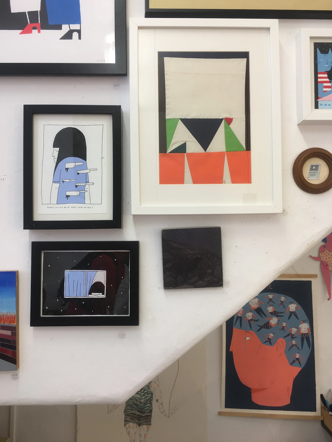 아담한 규모의 갤러리 안은 핫한 일러스트 작가들의 작품이 꽉꽉 들어차 있었다. 환상적이다. 빼곡히 좋아하는 것들로 채워 넣은 공간, 이 곳은 걸려있는 그림도 행복할 것 같았다. 정말로 그림을 위한 공간. 그리고 이번 여행에 확실히 알았다. 나는 빈티지를 좋아한다. 빈티지 천국 포르투갈.