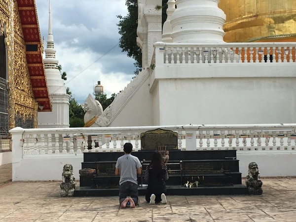길다면 길고 짧다면 짧은 여행 기간 동안, 처음이자 마지막으로 들른 사원이었다. <왓 쑤안독> 가장 예쁜 사원이라기에, 만약 사원에 들르게 된다면 이 곳에 와야겠다 했었는데 마침. 온통 하얀 사원 벽에 둘러싸이자 마치 딴 세상에 온 것 같았다. 맨 발에 무릎까지 꿇고, 저들은 무엇 저리 간절히 기도하고 있는 걸까.