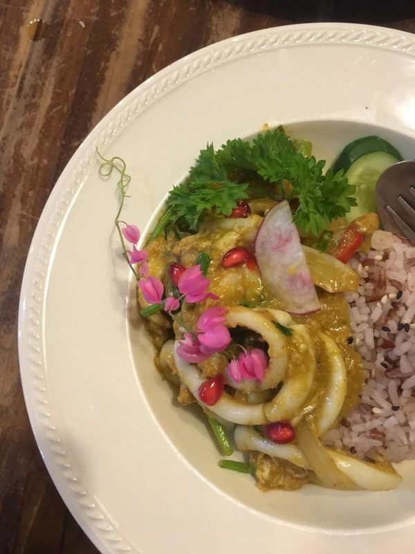 샐러드와 카레, 꺄악 너무 예뻐 너무 예뻐. 흑흑. 카레를 먹다가 석류가 톡 하고 씹힌다. 게다가 오징어 들어간 카레의 맛이 아주 기가 맥힌다. 맛맹이 인정하는 맛집. 너어무 맛있게 먹었다.