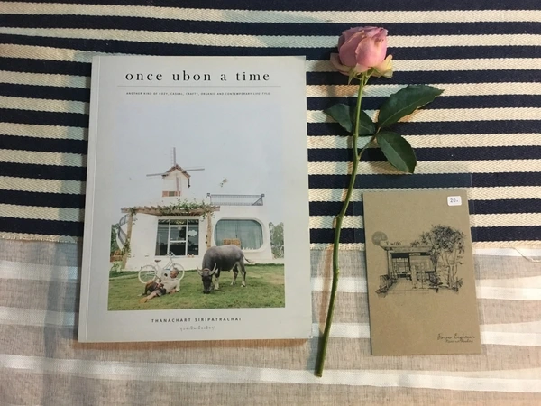 란라오에서 구입한 사진집, <once ubon a time>과 란라오 서점 스케치 엽서. 가운데 장미 놓고 허세샷. 나중에 찾아보니 태국관광청 공식 인스타그램에 '태국여행 중 기념으로 살만한 태국 서적'의 목록에 올라와 있는 걸 보고, 사람 눈은 다 거기서 거기구나 했다. 소개글을 옮겨 보자면, <Once upon a time이 아닌 Once ubon a time. 우본(ubon) 지역에서 촬영된 이 사진집은 전형적인 태국의 시골 할아버지가 맥북과 스타벅스커피를 들고 있는 등 방콕의 힙스터를 흉내내는 재미있는 모습들이 담겨 있습니다.> 하나 같이 사진이 참 재밌었다.