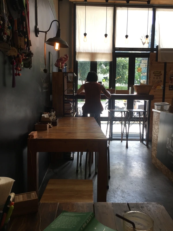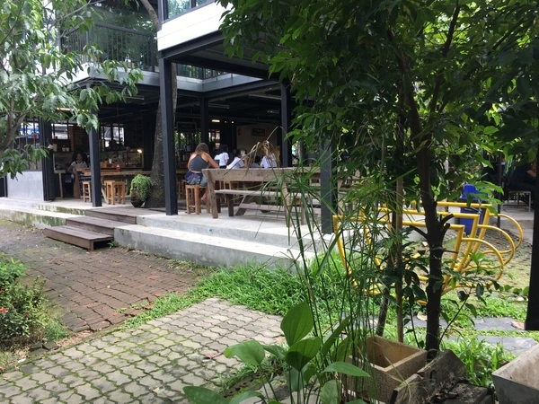 평화로운 아침 시간을 향한 집요함으로, 나오자마자 바로 맞은 편에 있는 카페에 다시 들어갔다. 알고보니 뜬금없지만 자전거 라이더들의 사랑방 같은 곳이었다. 카페에 수시로 헬멧을 쓰고 자전거 라이딩 복장을 한 건강한 여행자들이 들락거렸고 '나도 운동 좋아함'이라고 얼굴에 쓰여 있는, 건강미 넘치는 매력적인 여 사장님이 상큼한 미소로 맞아주셨다. 태국엔 미녀가 많은 것 같다. 들락날락 손님들은 있어도, 오래 앉아 있는 손님은 많지 않아서 내부는 조용하고 아늑한 분위기였다.