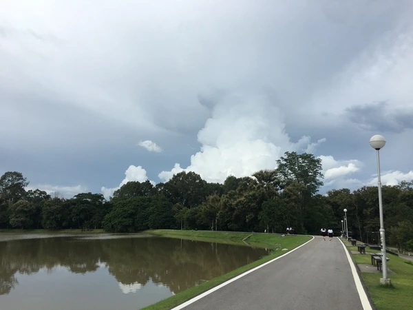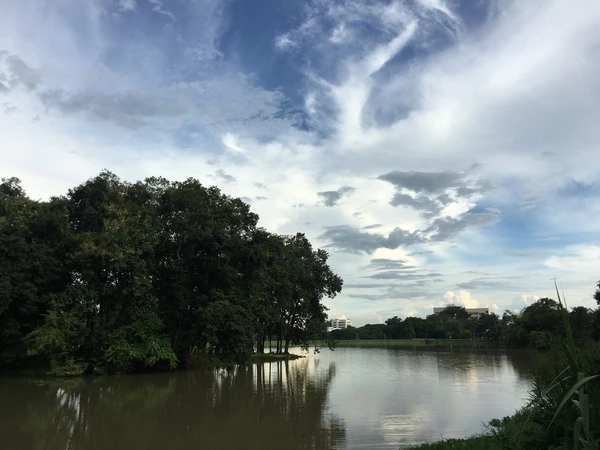 이게 대학교 안에 있는 호수의 일부, 때마침 적절한 하늘과 구름의 풍경까지.