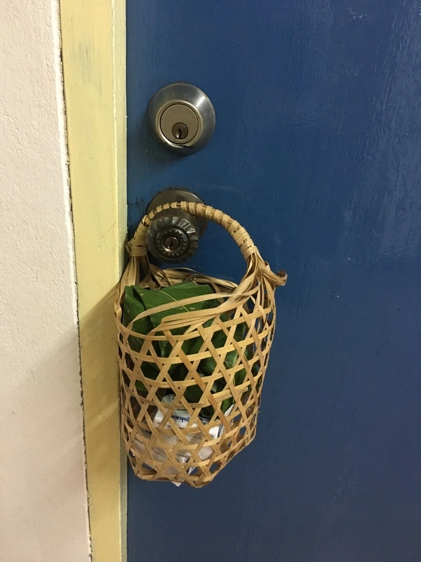 이제 좀 씻어 볼까 숙소에 들어갔더니 문에 덜렁 아침이 걸려 있었다.