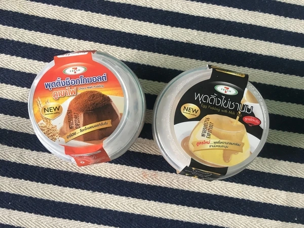 치앙마이 대학교 안의 세븐일레븐에서 찾은 푸딩을 두개다 한꺼번에 챱챱. 맛있었다.