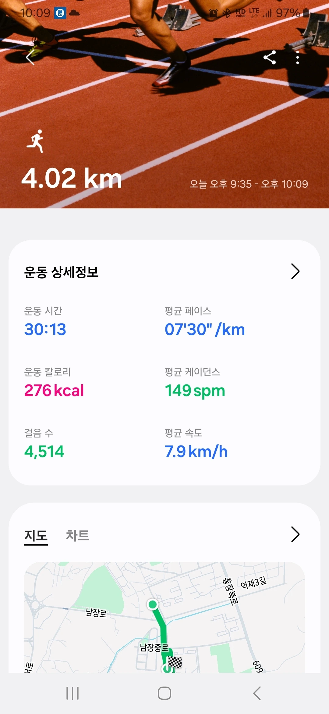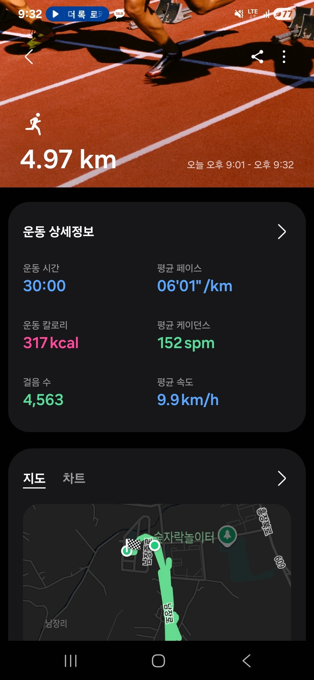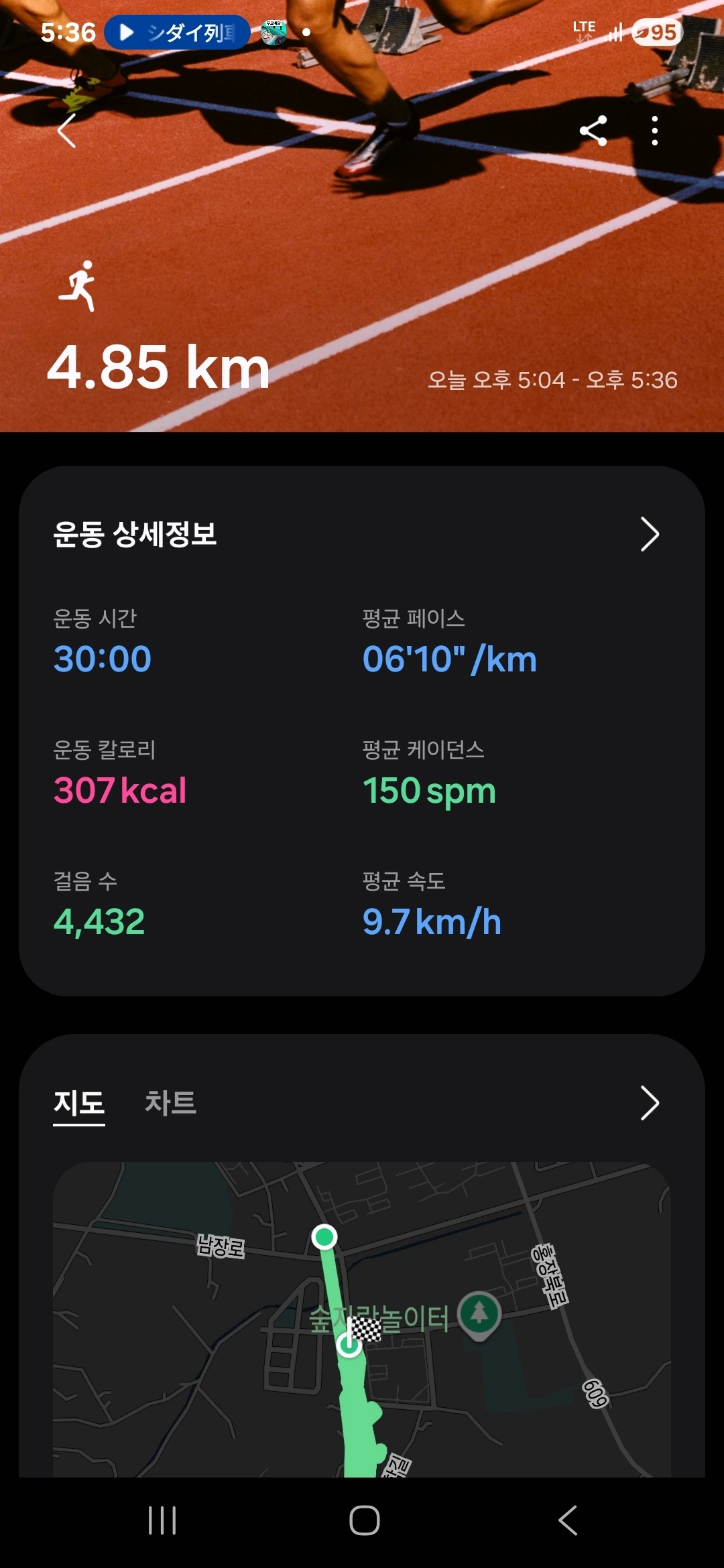 1km 6분을 목표로 달리고 있다. 8km 코스를 50분 이내로 완주하는 게 목표이다.