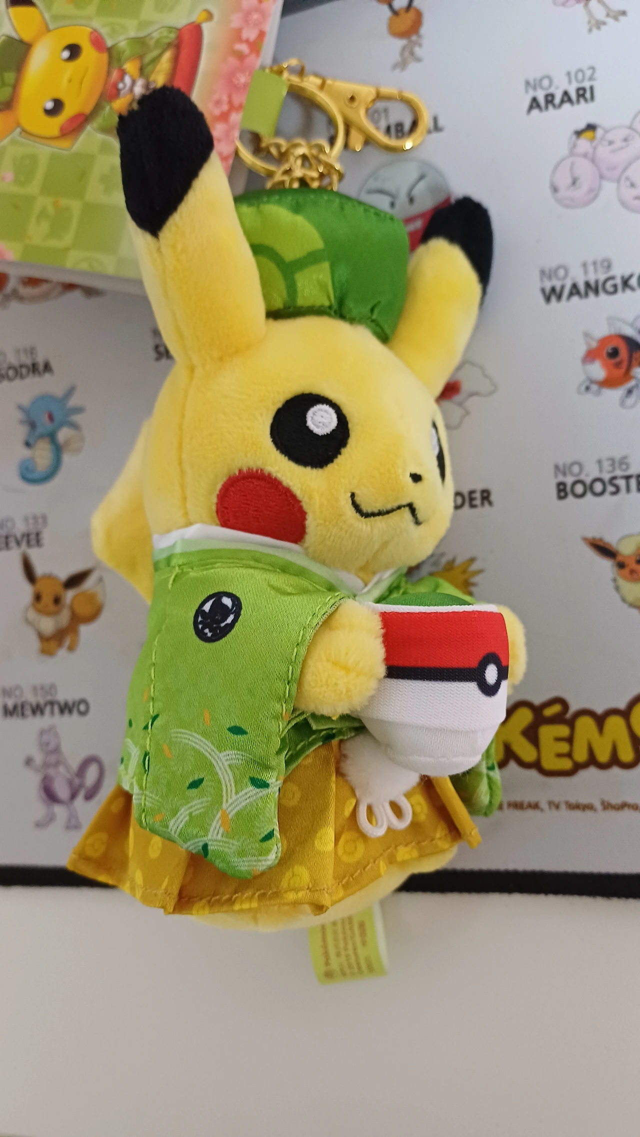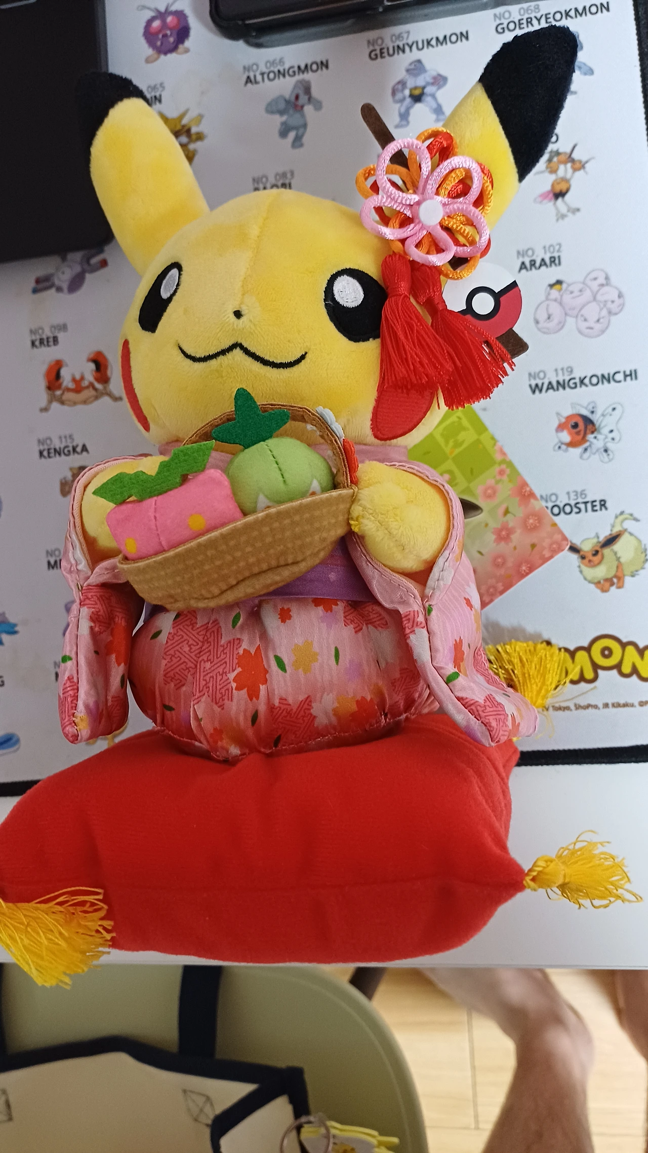 교토포켓몬 센터에서 위의 인형과 같이 구입한 기모노 피카츄이다. 바구니에 뭔갈 들고 있는데 포켓몬이다.