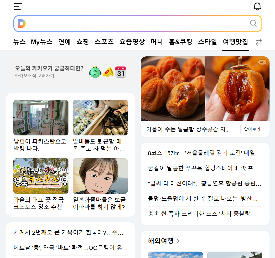 집에 와서 아이들 점심식사를 챙겨주고 pc를 켜고 확인해서 유입경로를 따라가 보았다. daum여행맛집 메인에 게재되어 있는 것을 보았다. 와.. 이런 영광이. 내 인생에 이런 일도 있구나. 브런치 작가가 된 지 약 2주밖에 안되었는데, 많은 분들이 봐주시고 구독, 댓글, 라이킷을 해주셨다. 너무너무 감사했다. 지금 현재(9월 6일 오후 6시 55분(파키스탄시간,한국시간 오후10시55분)) 조회수는 2만이 넘었다. 그리고 계속 늘어나고 있는 추세다.