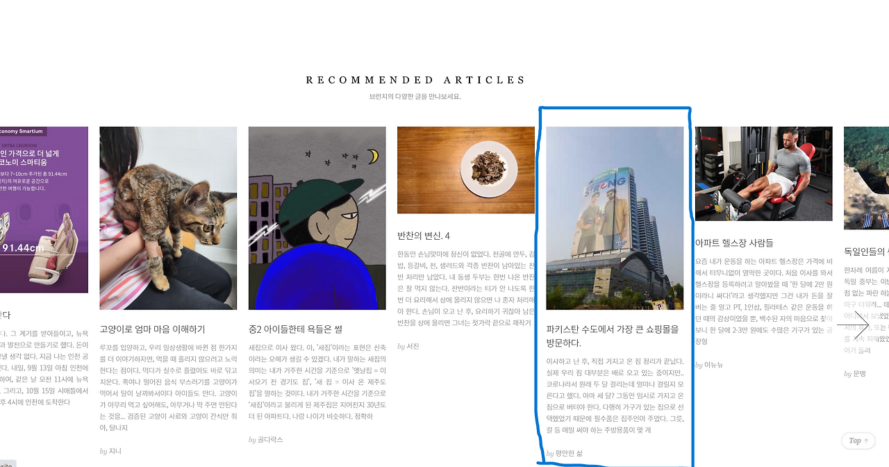 브런치스토리 recommended articles에 내 글이 동시에 2개나 올라가 있었다. '남편이 파키스탄으로 발령 나다'와 '파키스탄 수도에서 가장 큰 쇼핑몰을 방문하다' 글이었다.