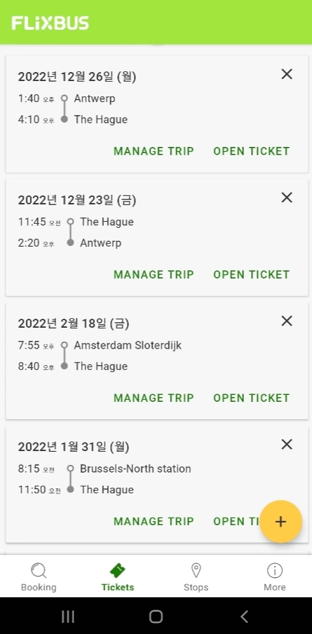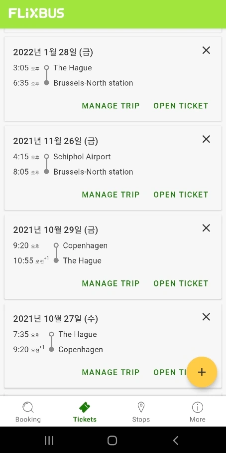 나의 플릭스 버스(Flix Bus) 탑승 이력을 캡처해 봤다.