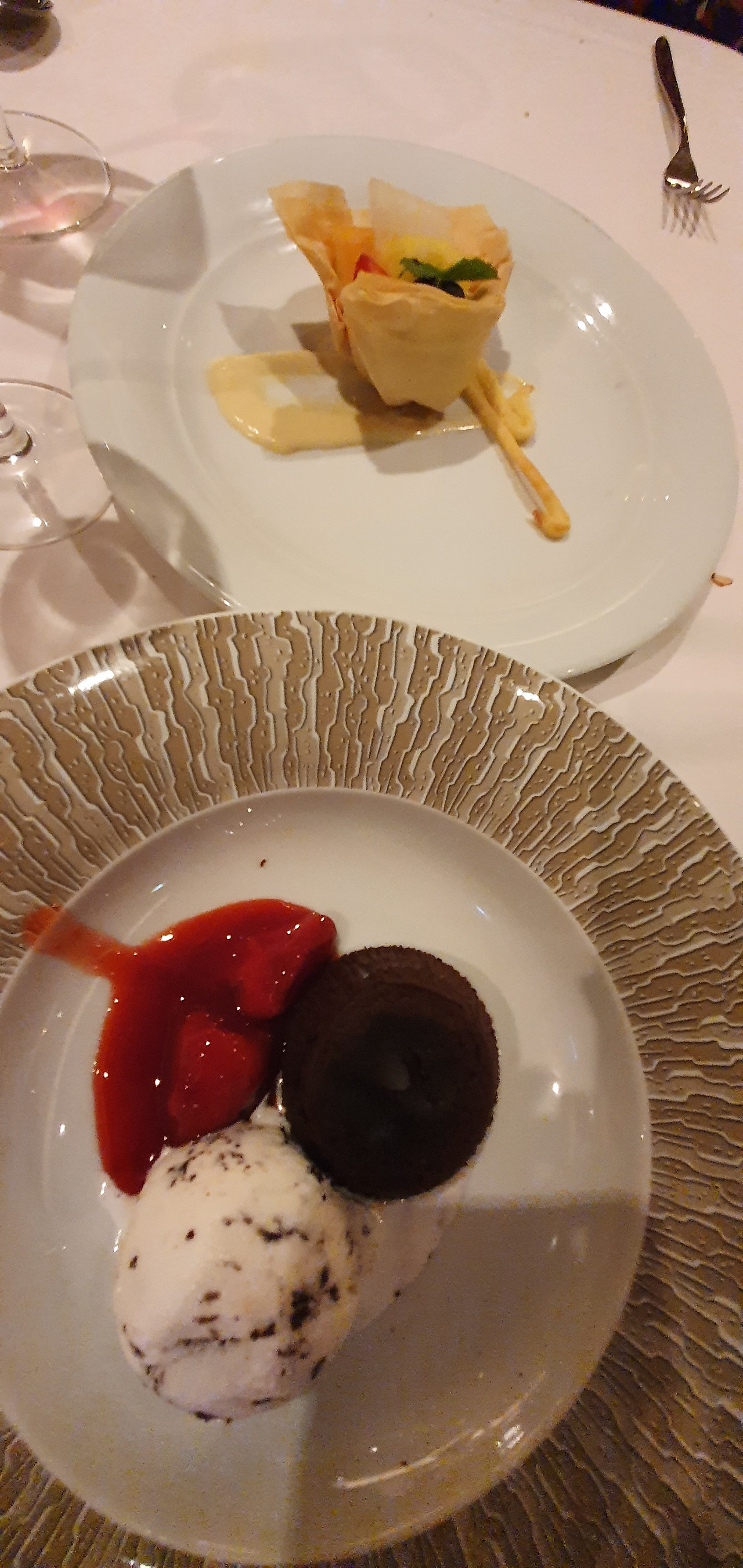 애피타이저로 엄마는 수프, 나는 스프링 롤과 베이비 백립을 시켰다. 전체 요리로 립이라니. 본격적인 먹방에 돌입했다. 메인으로는 생선요리와 스테이크를 시켜서 나눠 먹었다. 디저트로는 쿠키와 라즈베리를 곁들인 아이스크림을 골랐다.