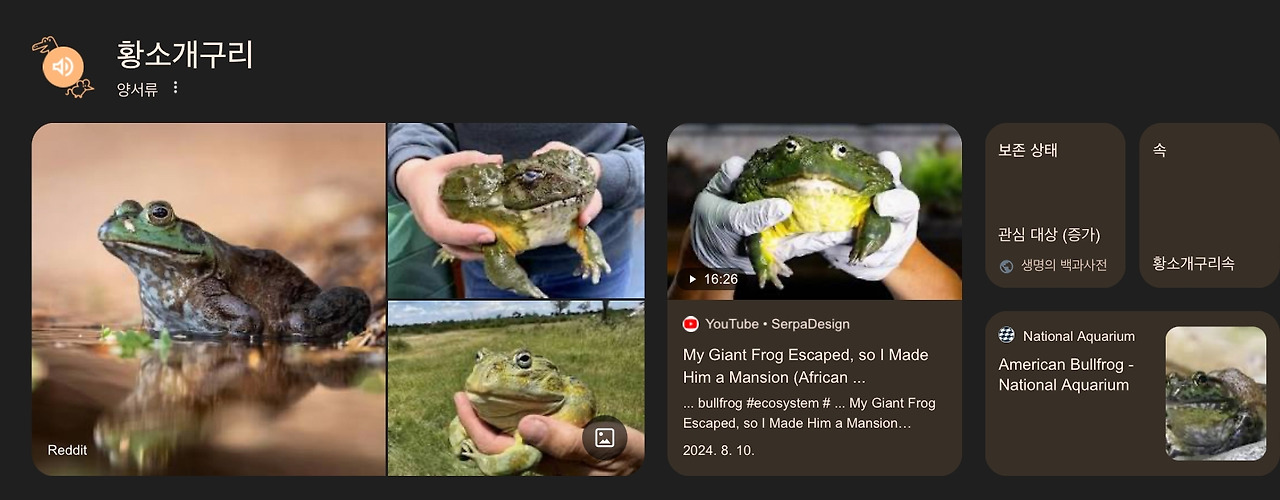 왜인지 익숙한 걸 꼽으라면 1) 육포 2) 소(꼬리 혹은 갈비)찜 / 감자탕 처럼 생긴 음식 두가지가 보였고 황소개구리의 경우, 오랜 기억을 더듬어 꺼내보면 한창 심각한 번식 수준과 더불어 생태계 교란종으로 선정되어 뉴스에서 연일 보도가 된 기억이 있다. 그러다 어느날, 황소개구리 요리법이 성행하고 지난 뉴스기사를 볼까하고 찾다보니 <황소개구리 포획 사업 본부>가 실제로 여전히 존재하는걸 알게되었다. 아무쪼록 황소개구리과에 해당되는 개구리가 아프리카에도 있나보다 싶었다.