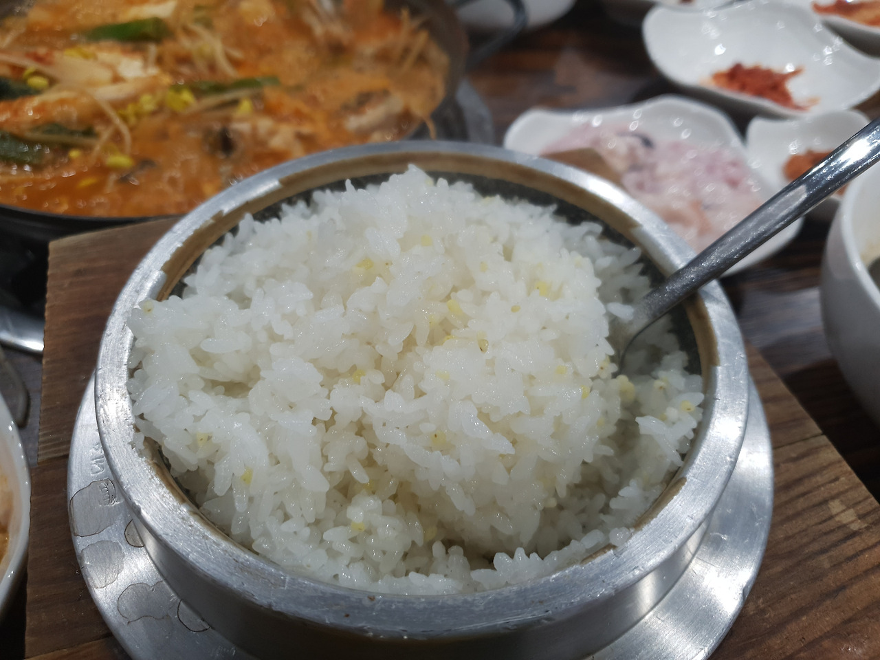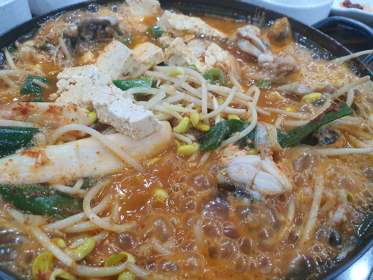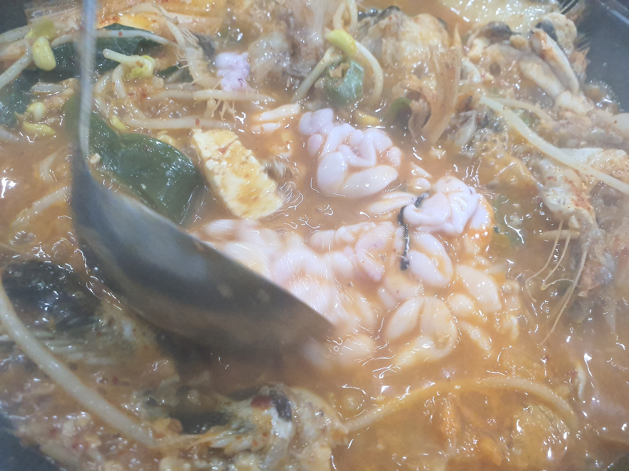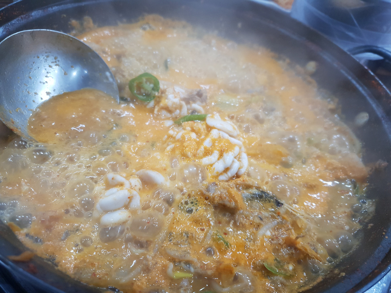 서비스로 나오는 고니가 끝. 생물이라 물컹물컹하다. 크리미하면서도 담백하다. 느끼하지않다. 칼칼한 국물을 녹여준다. 매운 혀를 달래준다. 누룽지밥과의 조합도 좋다. 밴댕이젓 등 기본반찬들은 기본 이상이다. 웬만한 동해 현지 식당보다 무조건 우위다. 안성에 온 손님들에게 강력추천할 수 있는 집이 하나 더 생겼다.