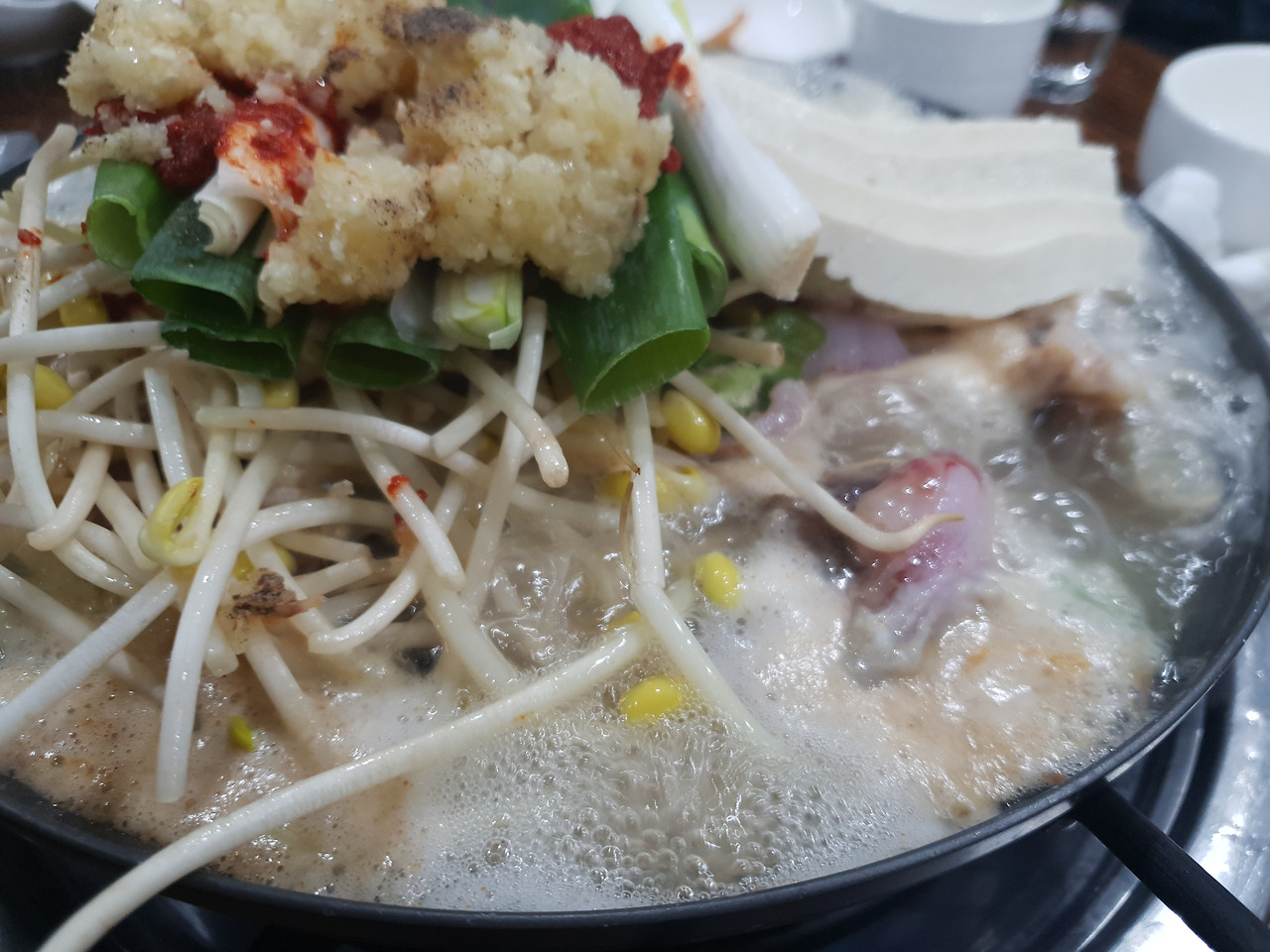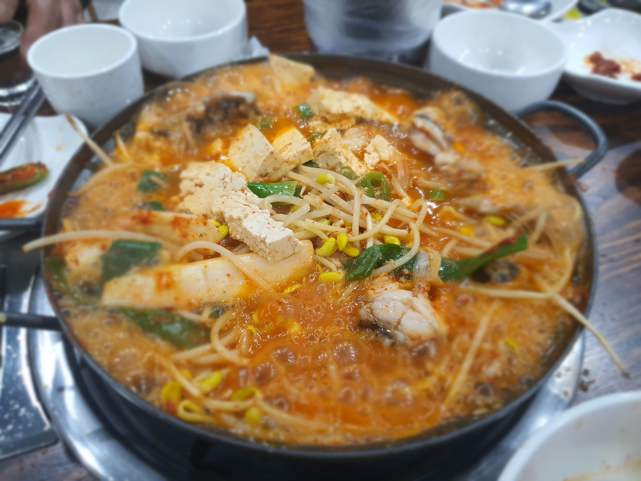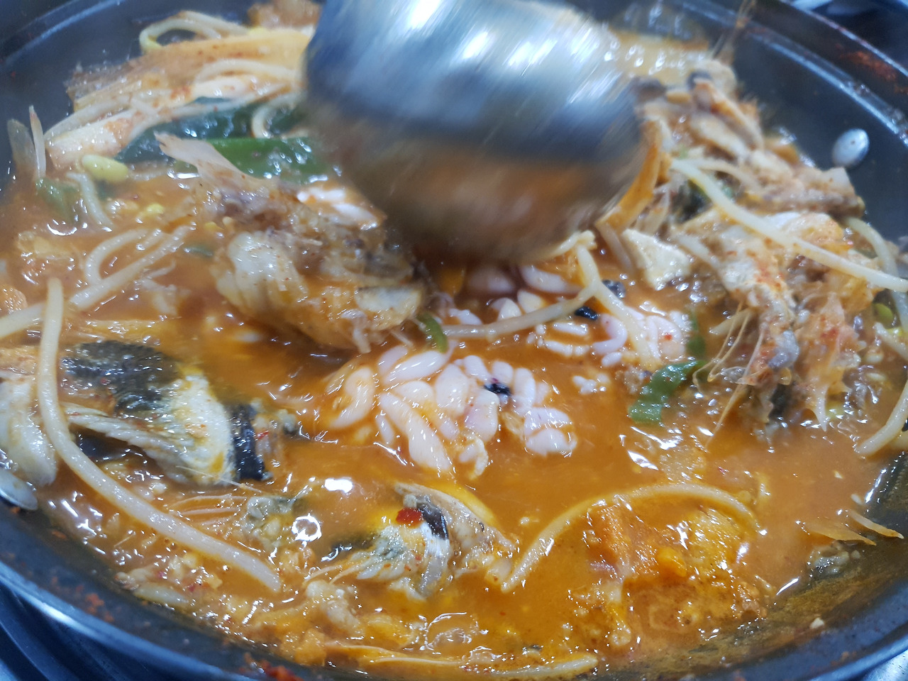 서비스로 나오는 고니가 끝. 생물이라 물컹물컹하다. 크리미하면서도 담백하다. 느끼하지않다. 칼칼한 국물을 녹여준다. 매운 혀를 달래준다. 누룽지밥과의 조합도 좋다. 밴댕이젓 등 기본반찬들은 기본 이상이다. 웬만한 동해 현지 식당보다 무조건 우위다. 안성에 온 손님들에게 강력추천할 수 있는 집이 하나 더 생겼다.