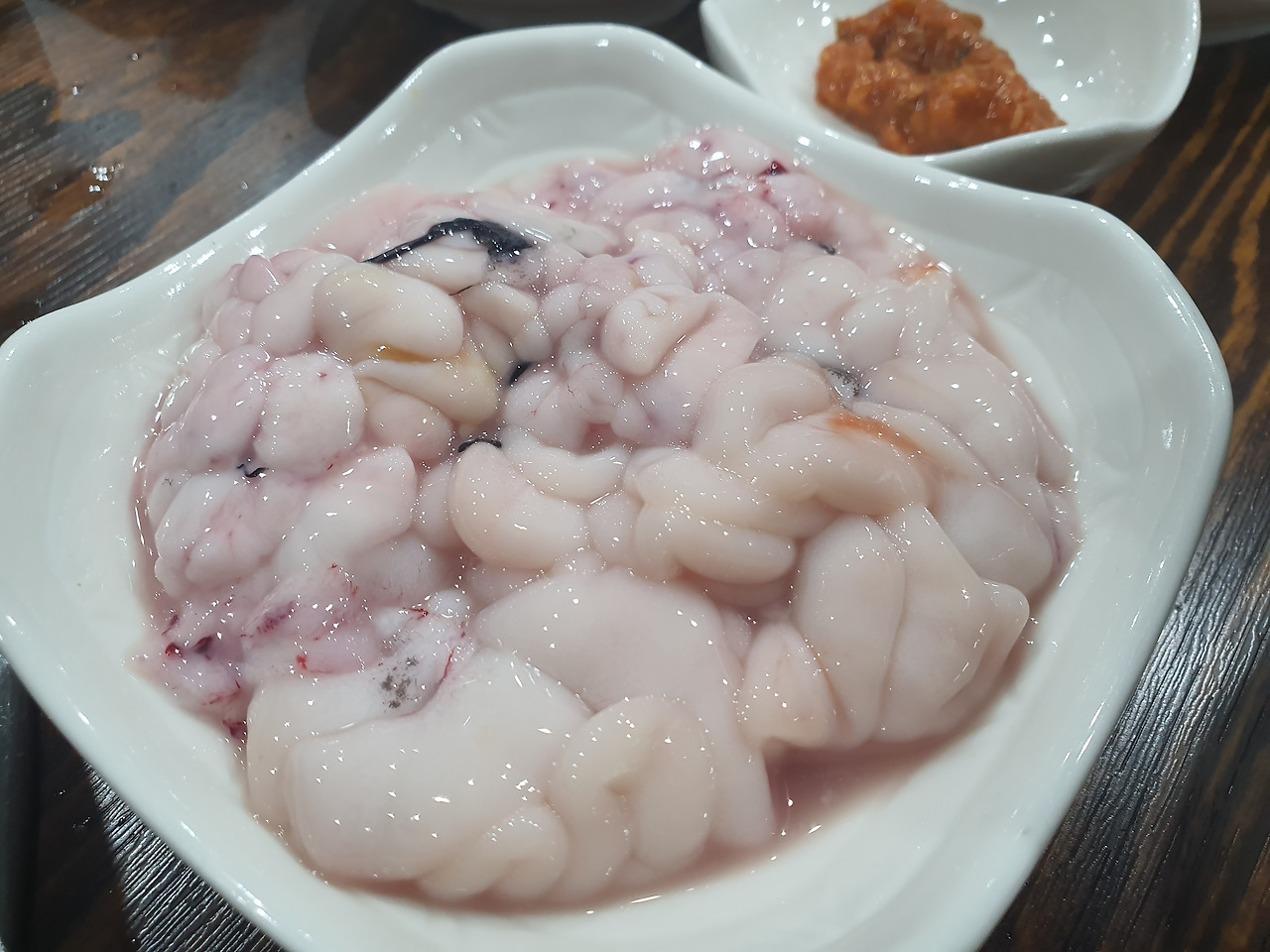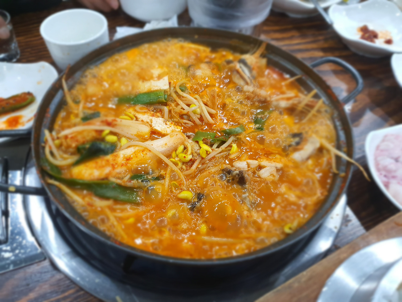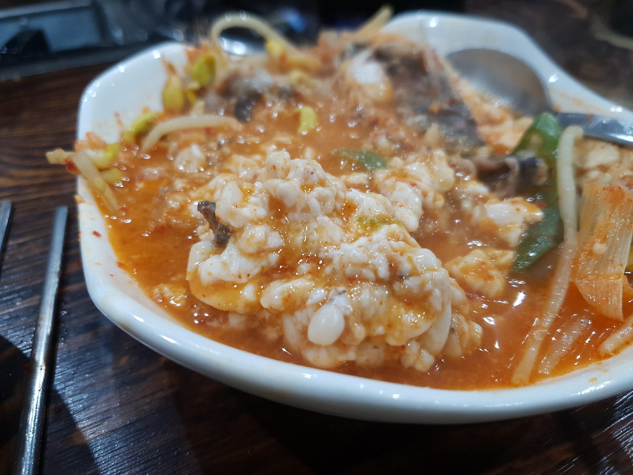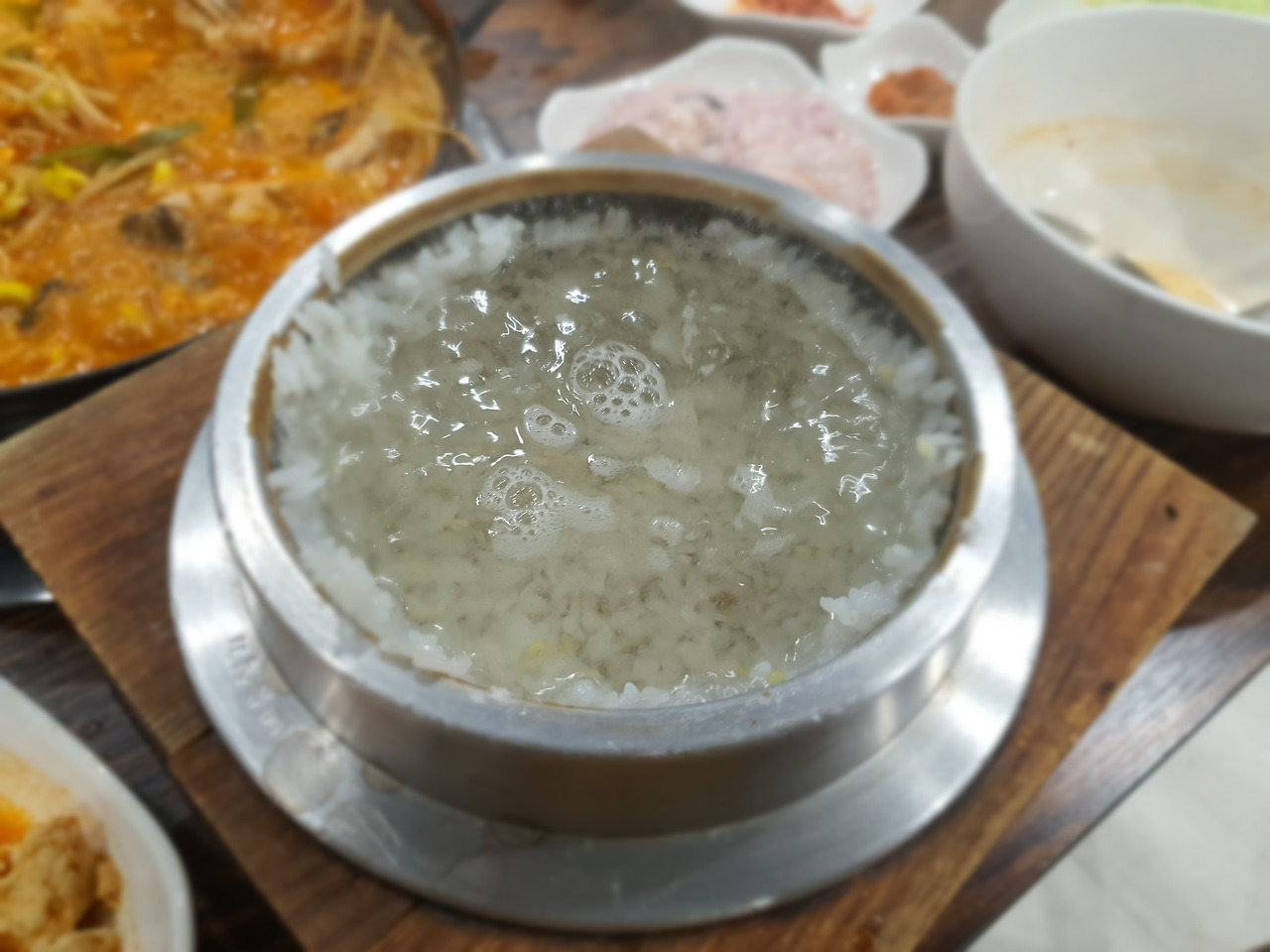 서비스로 나오는 고니가 끝. 생물이라 물컹물컹하다. 크리미하면서도 담백하다. 느끼하지않다. 칼칼한 국물을 녹여준다. 매운 혀를 달래준다. 누룽지밥과의 조합도 좋다. 밴댕이젓 등 기본반찬들은 기본 이상이다. 웬만한 동해 현지 식당보다 무조건 우위다. 안성에 온 손님들에게 강력추천할 수 있는 집이 하나 더 생겼다.