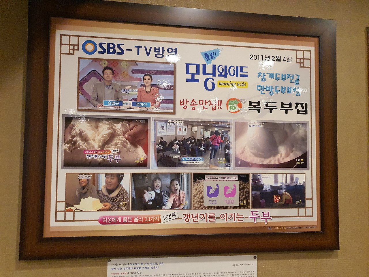 모닝와이드에 출연했던 방송맛집. 런치 메뉴는 8000원, 저녁메뉴는 1만원인데 3000원짜리 콩비지전이 포함됐다.