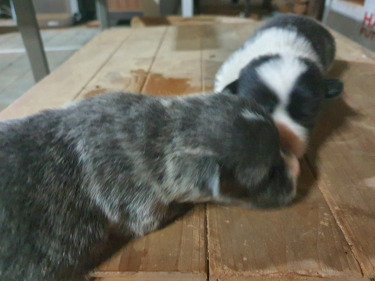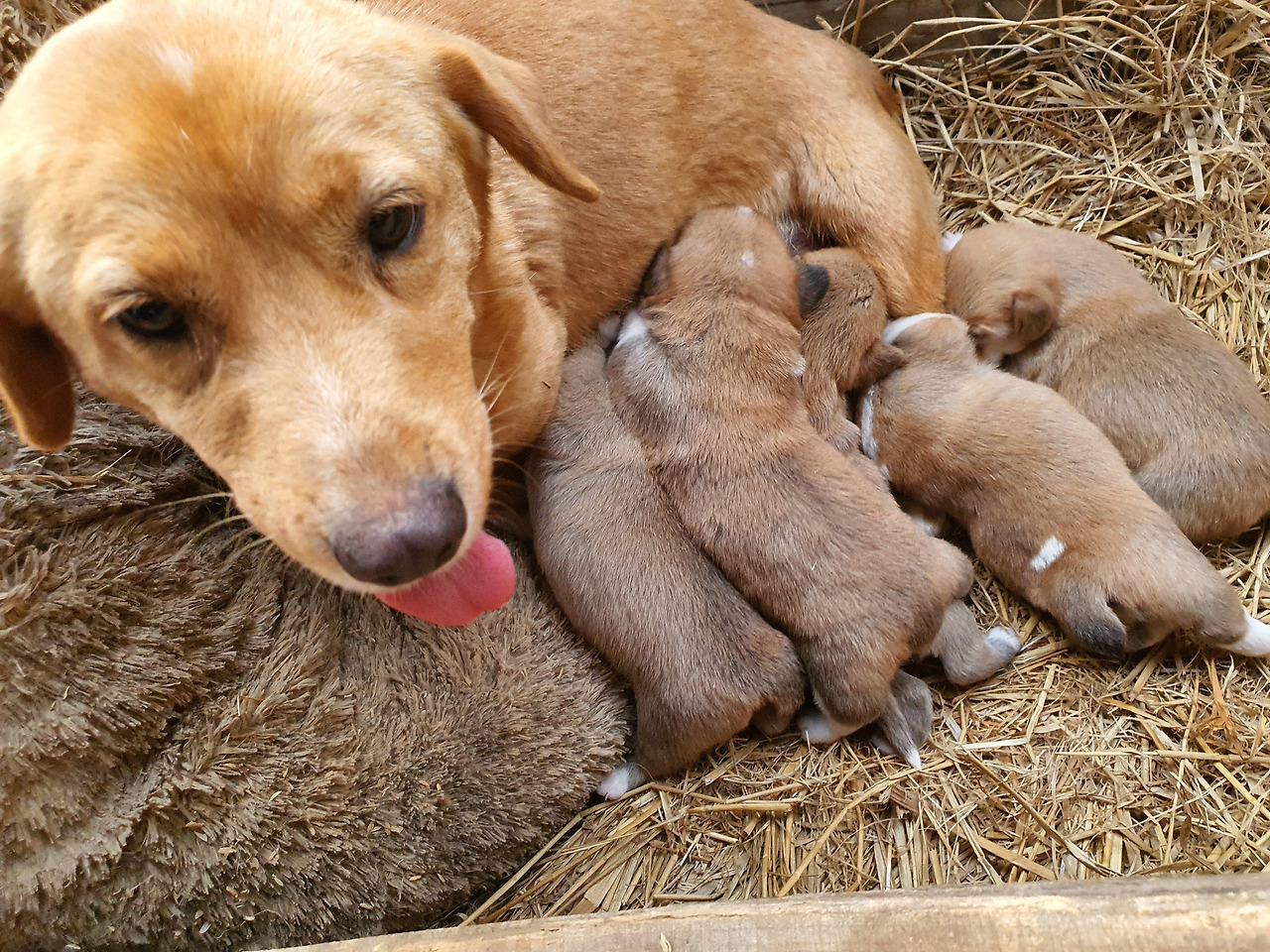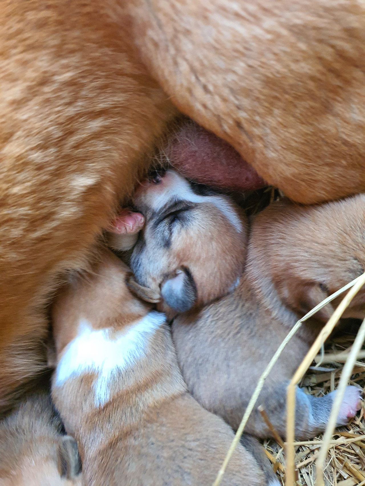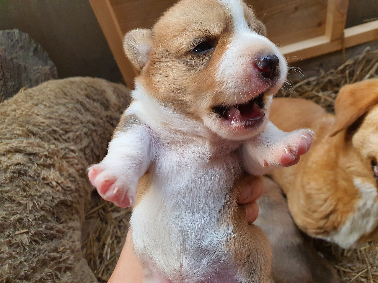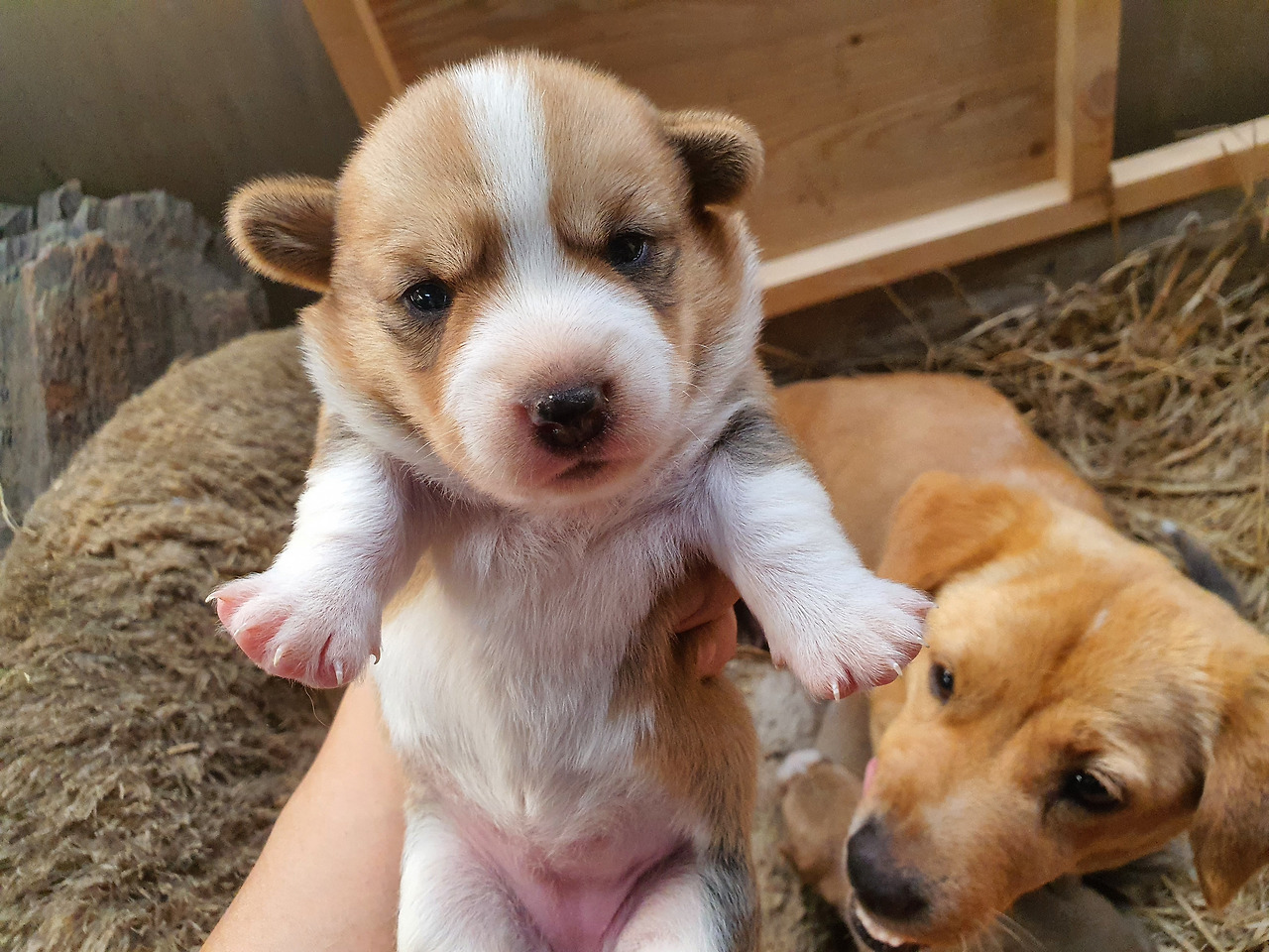 5월8일, 5월10일. 몽실이와 깐순이는 이전에도 이틀 간격으로 새끼들을 낳았다. 몽실이 6마리, 깐순이 2마리. 이번엔 몽실이 아이들이 웰시코기 아빠 깐식이를 많이 닮았다. 코기 특유의 패턴을 갖고 태어났다.