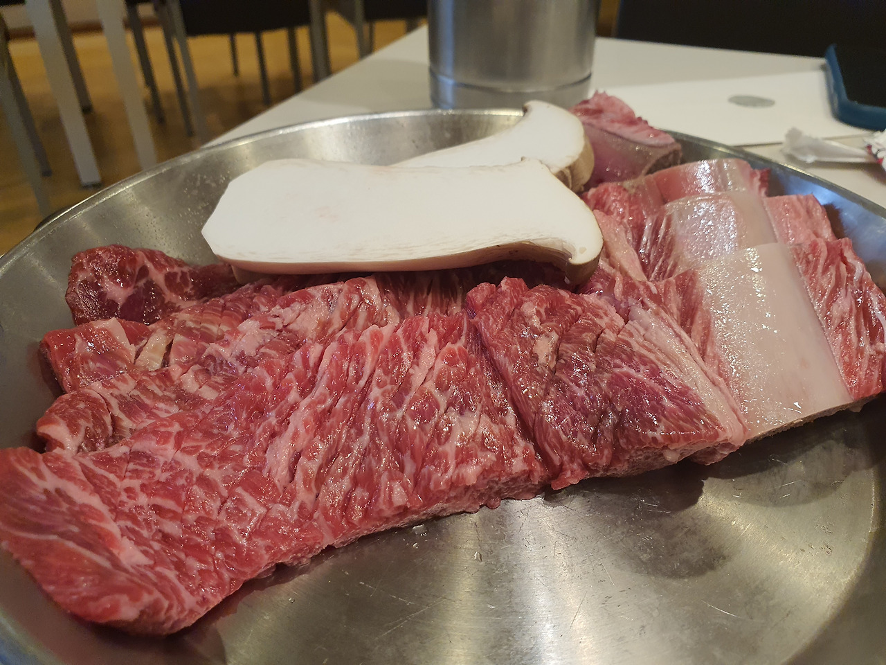 재욱이는 '양껏' 먹도록 고기를 시켜준다. 1인당 2인분씩 먹었다. 생갈비, 양념갈비 1인분에 3만원. 포천이동갈비는 4만원대였는데, 오히려 형제갈비 고기가 싸게 느껴진다.