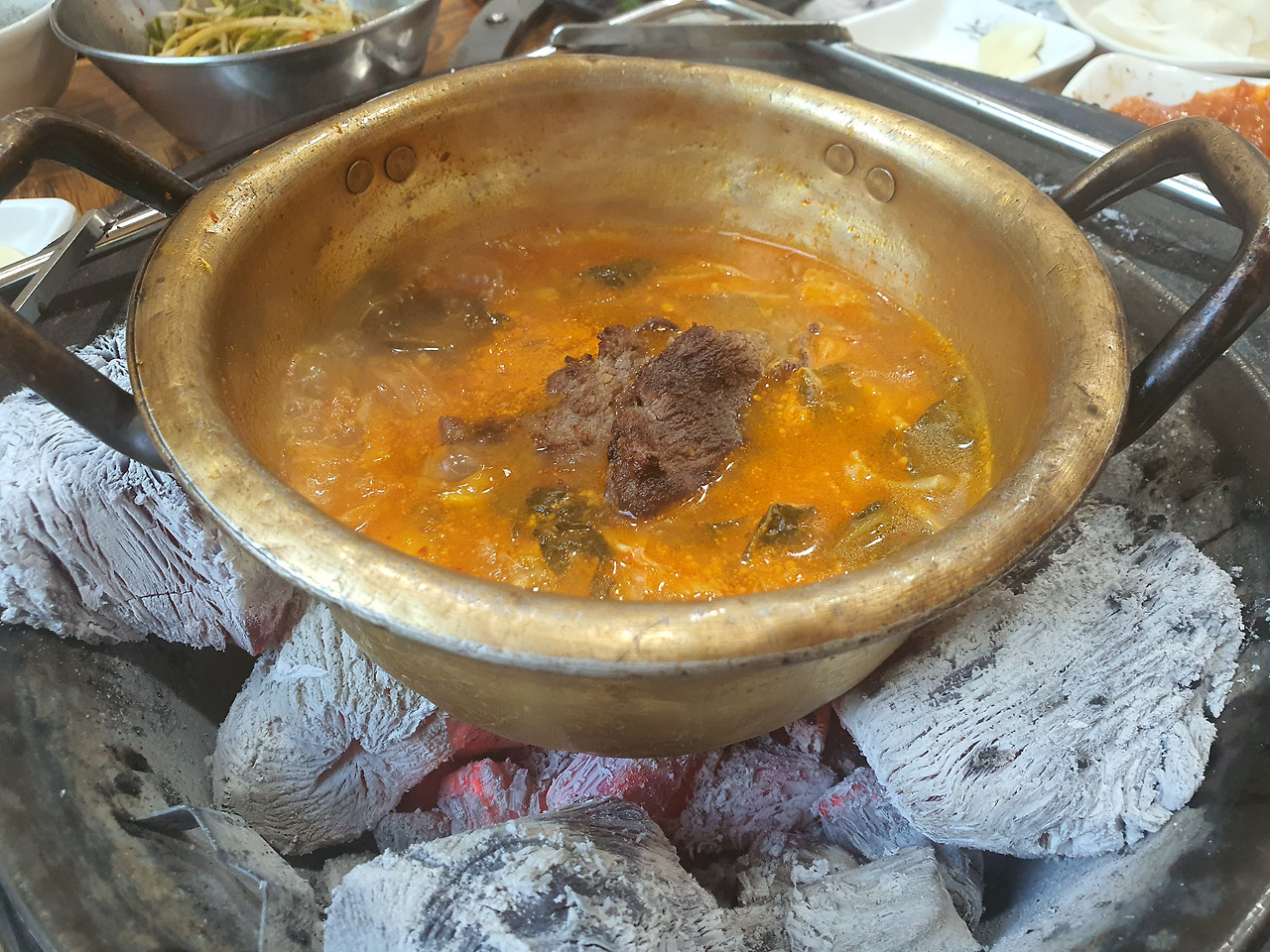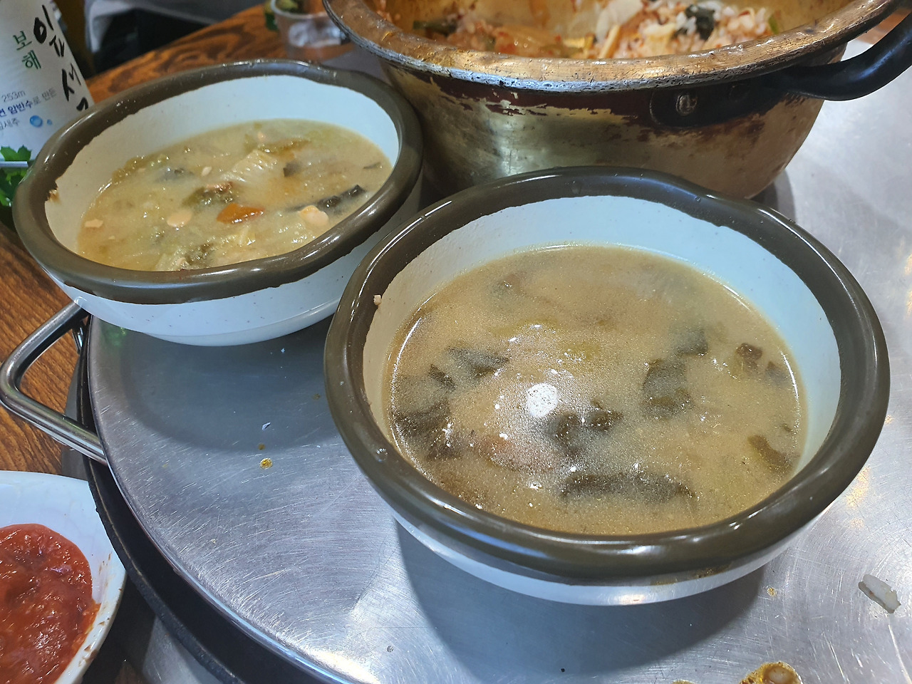 공기밥을 주문하면 이 식당의 시그니쳐 메뉴가 등장한다. 김치국같은 김치찌개. 무심한듯 대충 나온것 같은데, 비법이 있다. 불고기 2접을 남겨서 꼭 넣어줘야 한다.