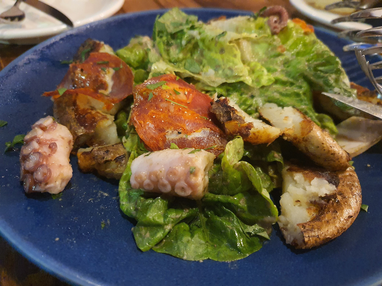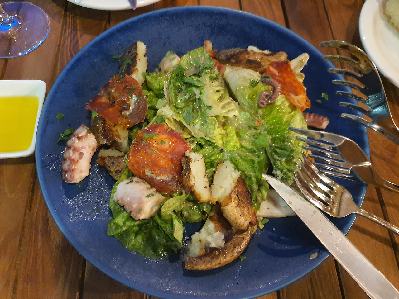문어 샐러드(2만9000원). 개인적으로 문어를 별로 좋아하지 않지만 이건 먹을만했다. 질기지 않고 입에 착착 달라붙는 식감으로 조리된 동해안 피문어와 적당히 구워진 알감자, 야채의 조화가 좋다. 관심없던 식재료가 맛있게 느껴진다면, 요리를 잘했다는거다.