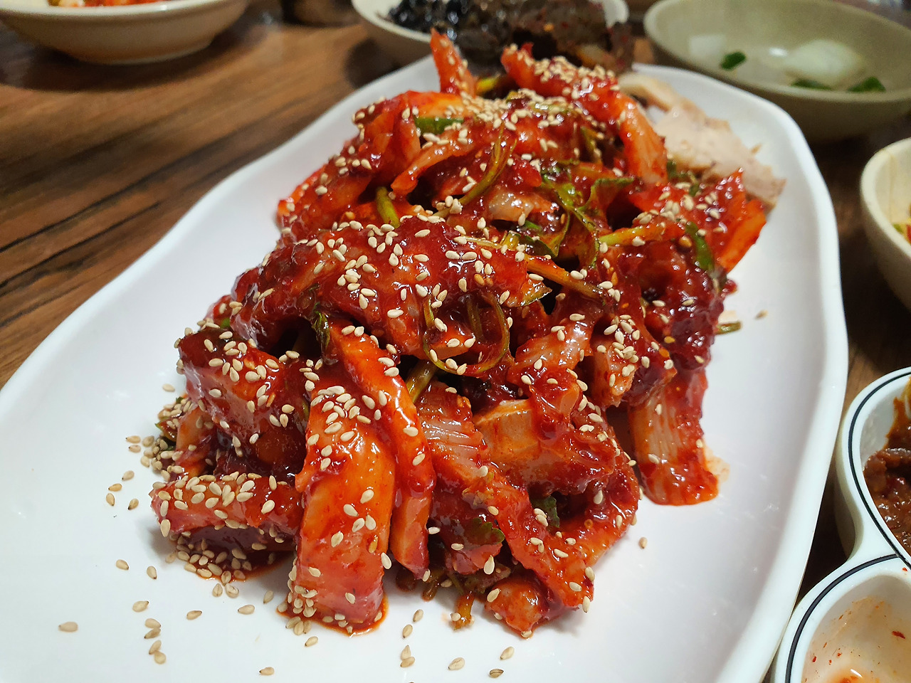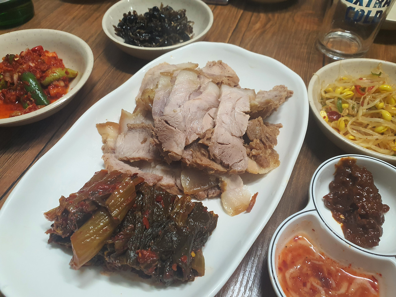 수육과 갓김치. 비쥬얼로 설명 끝. 기대되는 딱 그맛이다. 전라도 스타일의 밑반찬들도 안주로 제격이다.