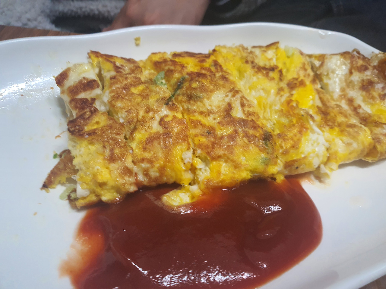 간재미무침과 계란말이까지. 싱싱한 간재미는 별미다. 케첩에 계란말이, 단순하지만 정석이다. 술도둑이 따로없다.