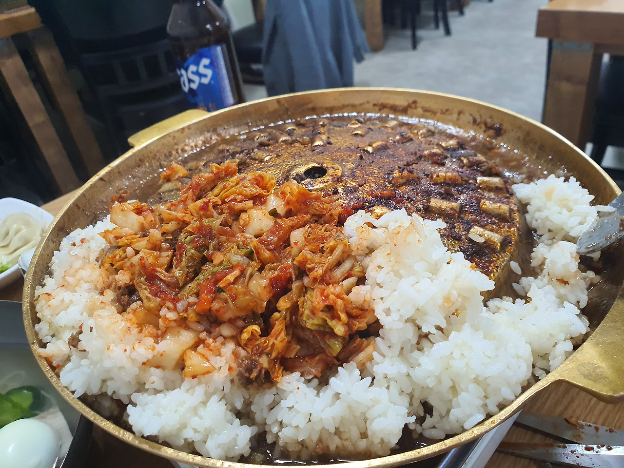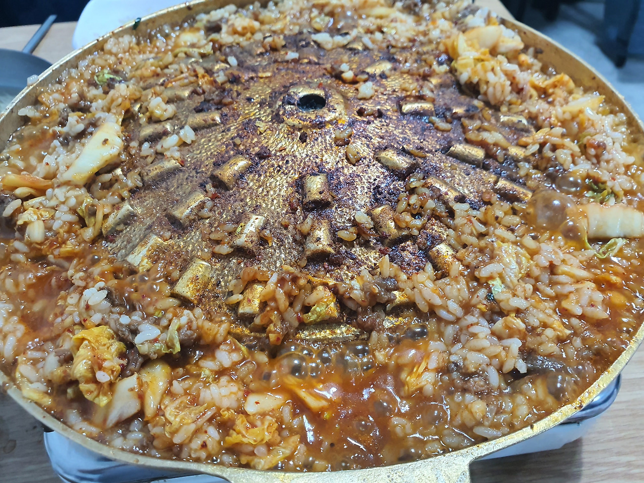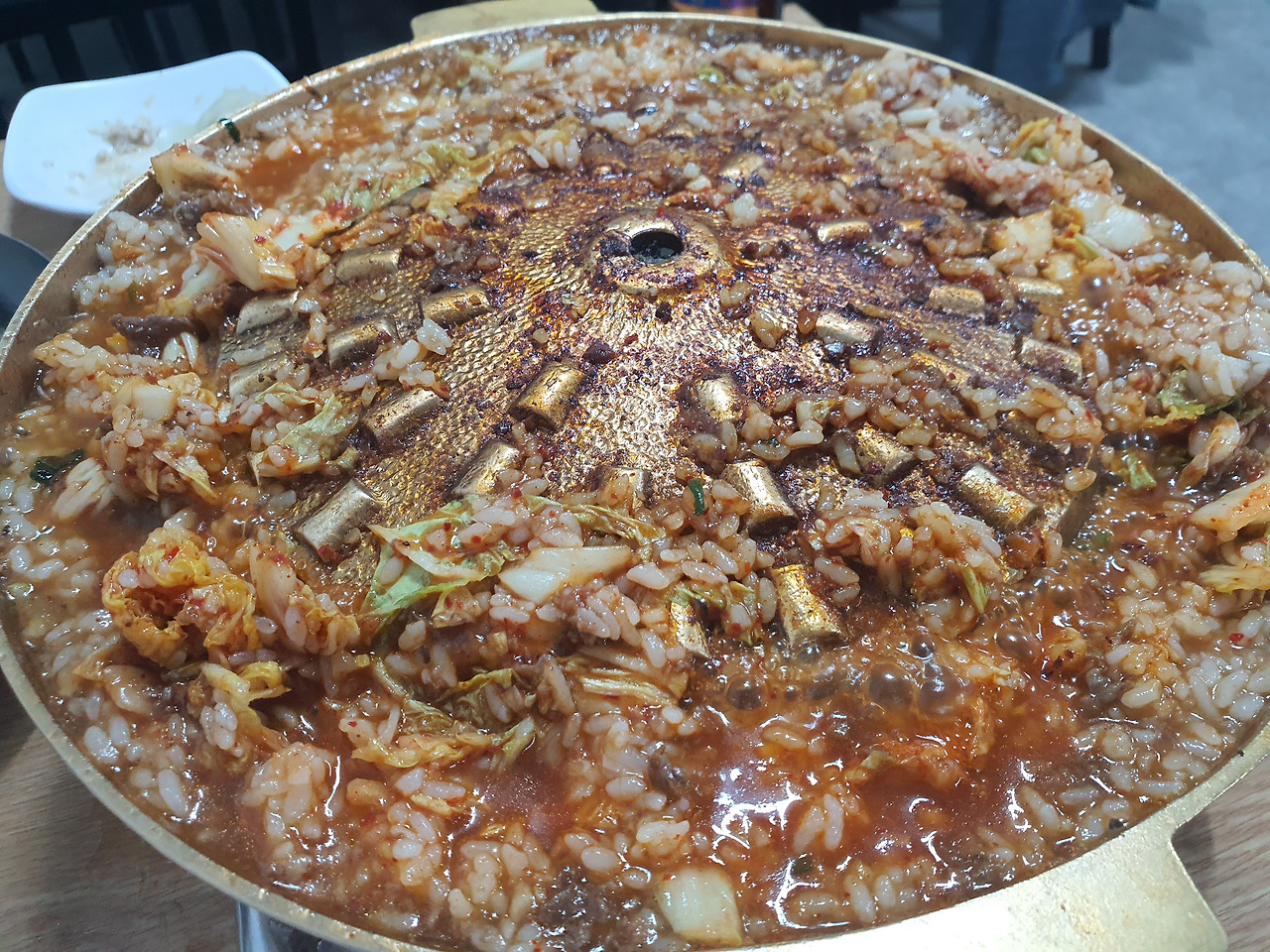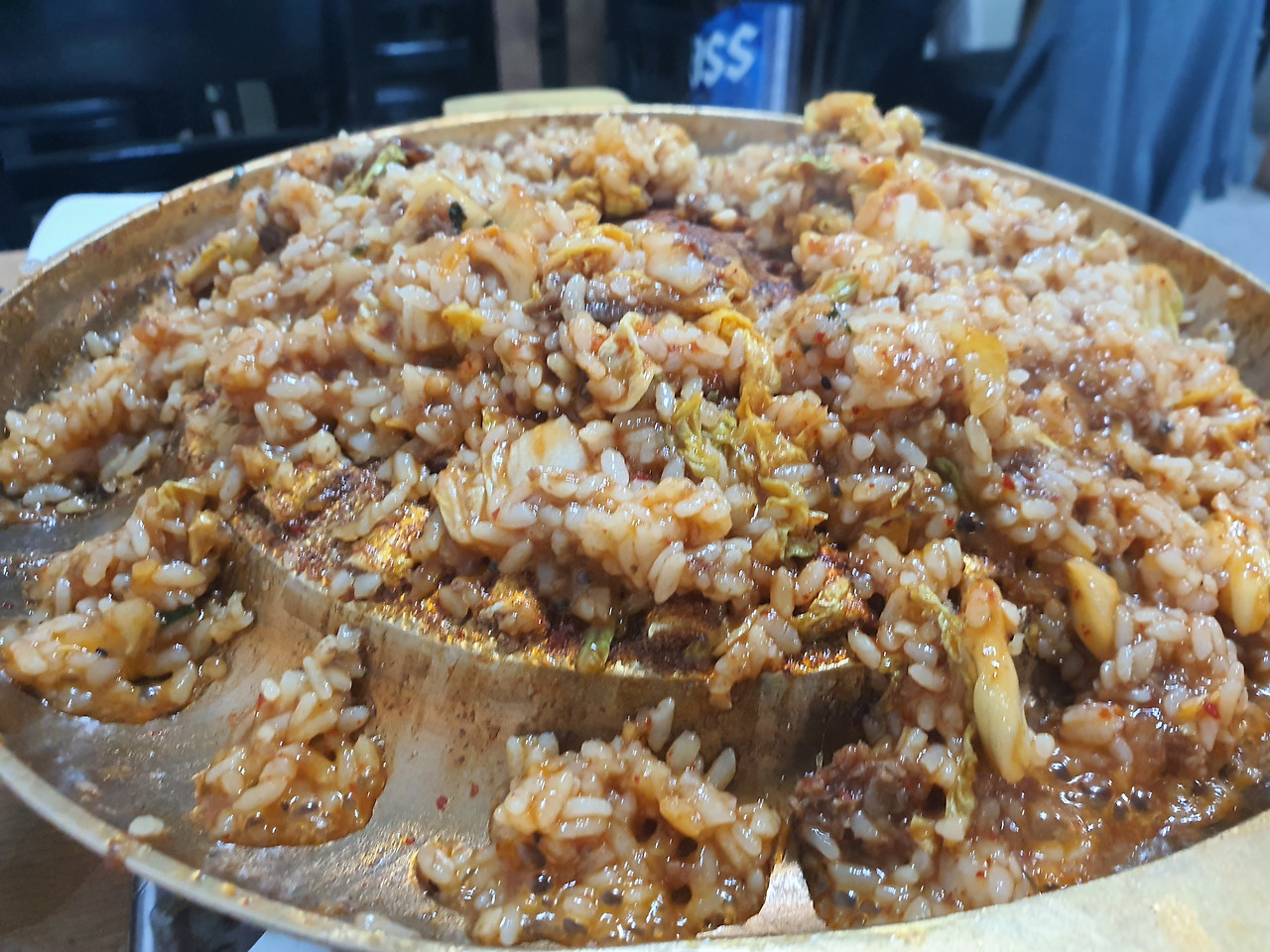 1000원으로 볶음밥 먹는 법. 볶음밥은 메뉴에 없다. 식당 입장에서 번거롭고 수익엔 그닥 도움안되는 메뉴가 볶음밥이라고 한다. 품은 많이 드는데 그래봤자 가격이 얼마 안되니까. 공기밥 하나를 시키고 김치를 추가 주문해서 잘라넣고 볶았다. 국물이 맛있으니 볶음밥도 맛있을 수밖에 없는 차원을 넘어서서 더 맛있다. 이거 먹으러 또 가고 싶을 정도.